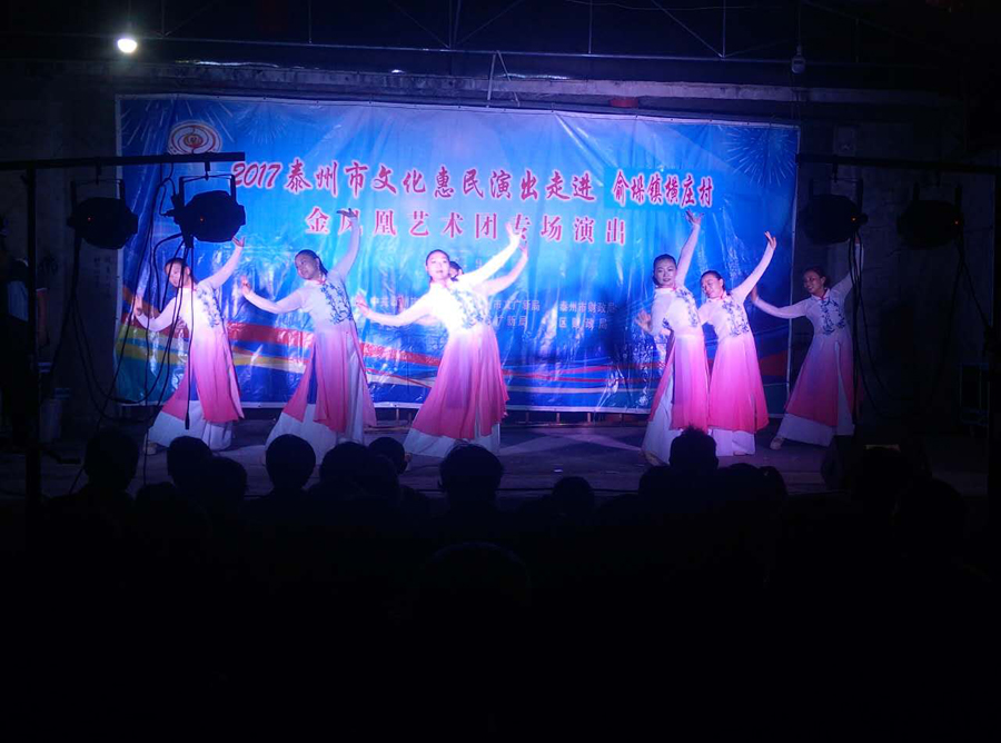 2017年9月9日晚,医药高新区金凤凰艺术团走进姜堰区俞垛镇横庄村,当天下午布置舞台时,天空还飘着小雨,布置舞台时就有观众围观,6点不到就陆续有观众进入现场,等待演出开始!