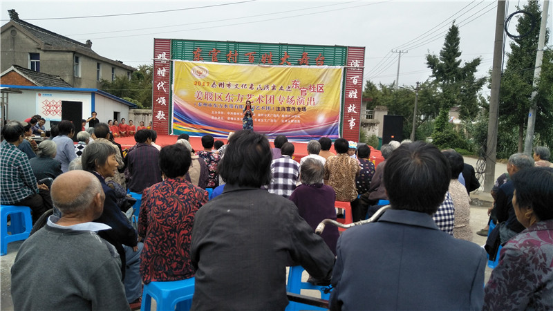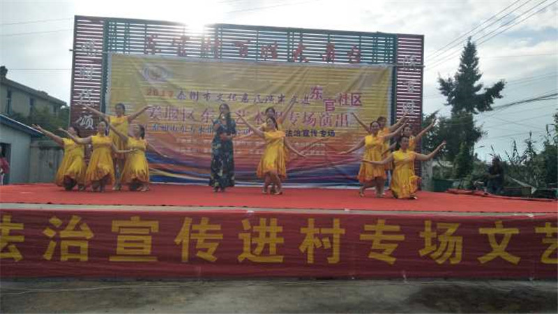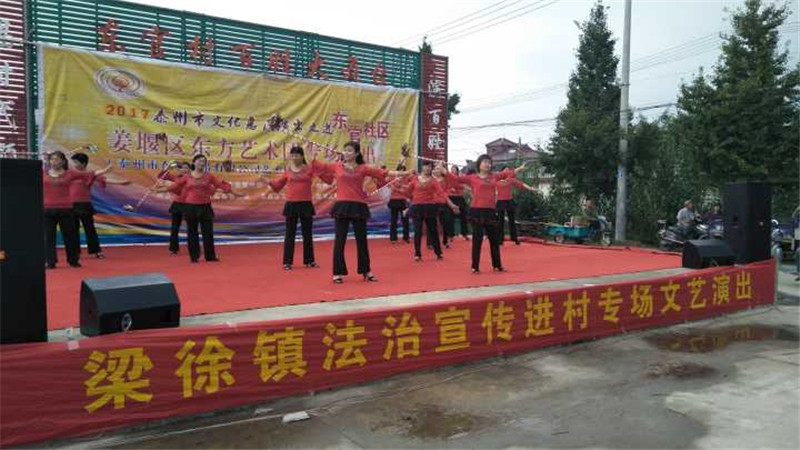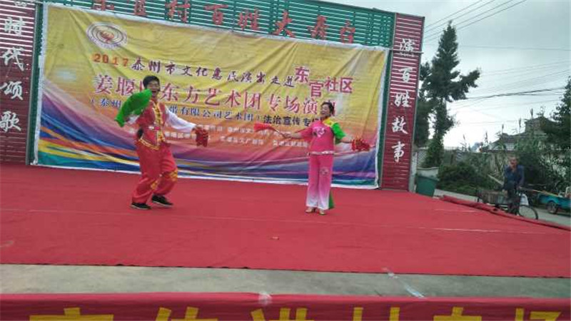 9月11日下午,姜堰区东方艺术团走进梁徐镇东官村,为老百姓们奉献了一场精彩的演出。舞蹈《江南梦》、小品《如此媒人》、莲湘舞、二人转……赢得了广大群众的阵阵掌声。