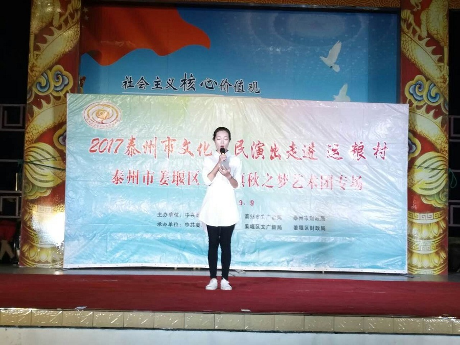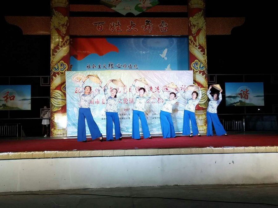 秋风送爽,明月亲情,在举国上下喜迎十九大胜利召开之际,姜堰区大伦镇秋之梦艺术团惠民演出来到环境优美的运粮村,运粮村是文明村,曾获得江苏省和谐社区,光荣称号,9月9日晚7点,艺术团精心编制了一台形式多样内容丰富的文艺节目,惠民晚会围绕宣传社会主义核心价值观的活动主题,倡导文明,崇德向善,尊老爱幼,团结友善,一个个节目精彩丰富,现场气氛非常热烈,笑声,掌声,欢呼省不断,近2小时的演出,现场600多名观众没有一个间中离场的,演出结束后,村领导及观众一致反映,演出弘扬了正能量,接地气,符合老百姓的口味,是一种真正的文化享受。