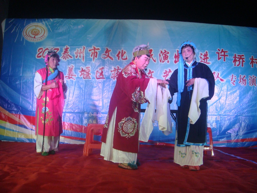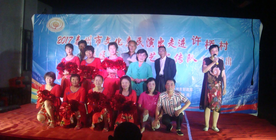 9月14日,姜堰区蒋垛镇文艺宣传队走进蒋垛镇许桥村,晚上7点钟在许桥村部广场开演,表演的节目有舞蹈《再唱山歌给党听》、戏剧《探寒窑》、表演唱《双回门》、对唱《浏阳河》、小品《充话费》等,节目形式多样,内容丰富,整场演出115分钟,观众300人左右,赢得广大观众的好评。