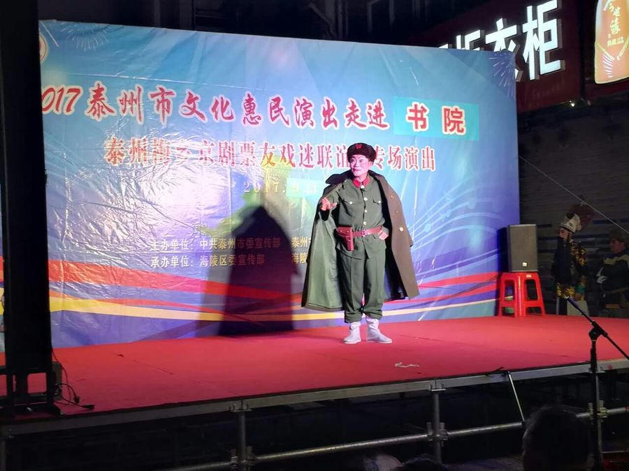 9月13日晚上,梅乡京剧票友联谊会在城中街道书院社区开展惠民演出活动,为居民们送上了一台高质量的京剧艺术大餐,让戏迷们过足了戏瘾。此次演出,有传统京剧《白蛇传》、《贵妃醉酒》、《状元媒》、《文昭关》、《钓金龟》、《锁麟囊》、《洪羊洞》等经典曲目,有现代京剧《沙家浜》、《白毛女》、《智取威虎山》、《红灯记》等优美唱段,演员们通过彩唱、对唱、折子戏表演等形式轮番上场,居民们在台下不时报以热烈的掌声和喝彩声,整场演出受到了广大居民的充分肯定和由衷赞誉。