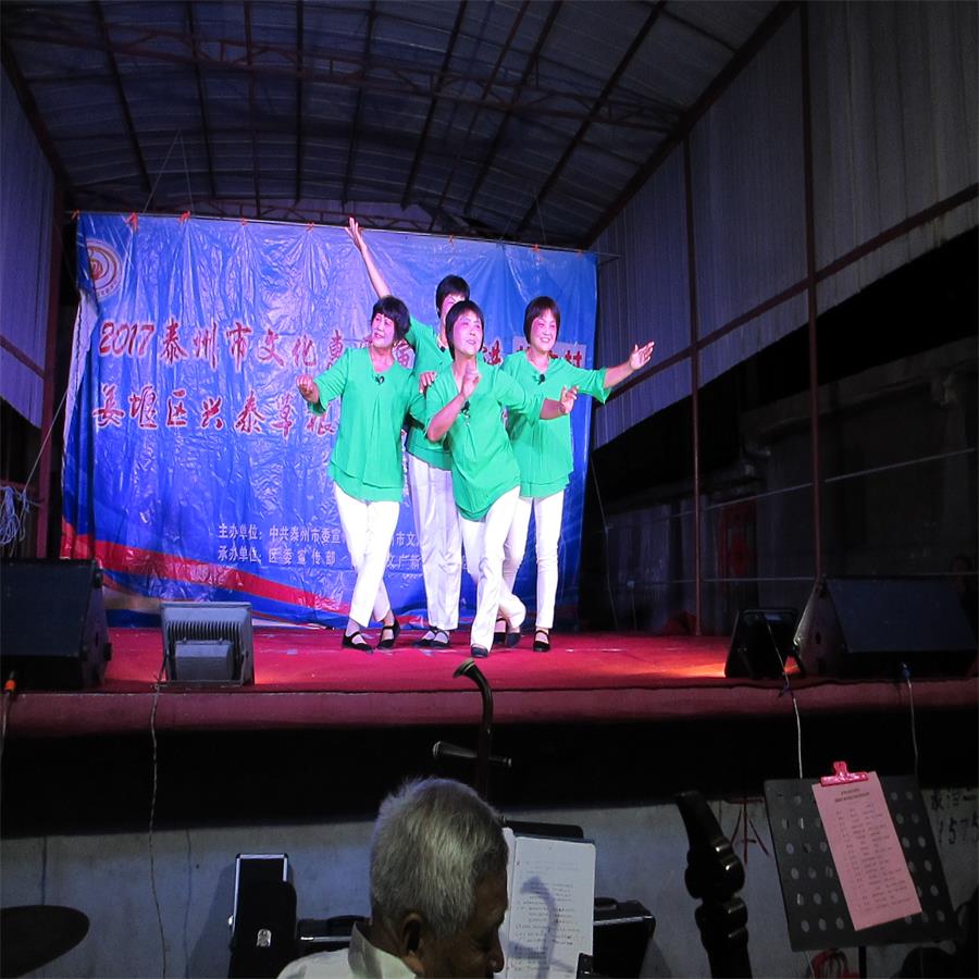 7月13日晚,应兴泰镇苏庄村邀请,姜堰区兴泰草根文化艺术团来到苏庄村惠民演出。7点整,欢快热烈器乐演奏拉开了演出的帷幕。艺术团给观众带来了形式多样的文艺节目,有歌舞,有说唱,有小品,还有传统戏曲表演和民歌、号子等。整场演出110分钟,吸引了300多观众,场上观众掌声不断,受到了一致好评。
