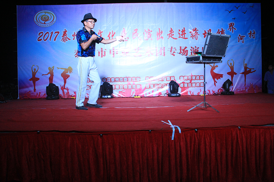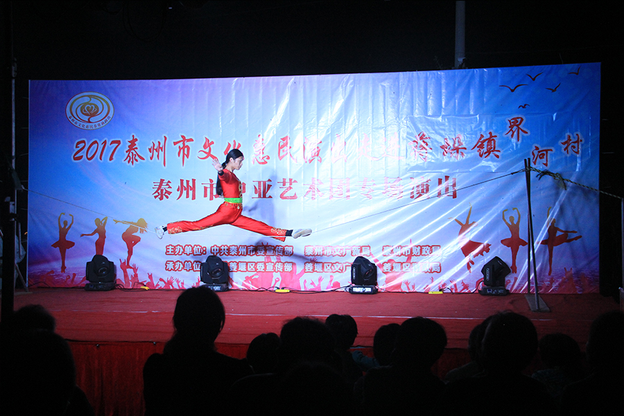 应姜堰区蒋垛镇界河村邀请,泰州中亚艺术团9月18日晚进行专场惠民演出,由于村里宣传到位,七点不到广场上就坐满了观众,中亚艺术团精心编排了以弘扬社会主义核心价值观,“三大主题”美德善行为主题的多种形式,内容丰富多彩的十多个节目。小品、戏剧、歌伴舞、舞蹈、魔术、杂技一个个节目精彩纷呈,赢得观众一次次热烈的掌声,完美的演出给观众带来了美好的视觉、听觉盛宴。也给人民留下了深刻的印象。村领导以及老百姓看了这次演出都拍手称赞。
