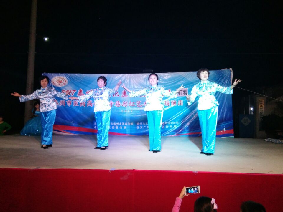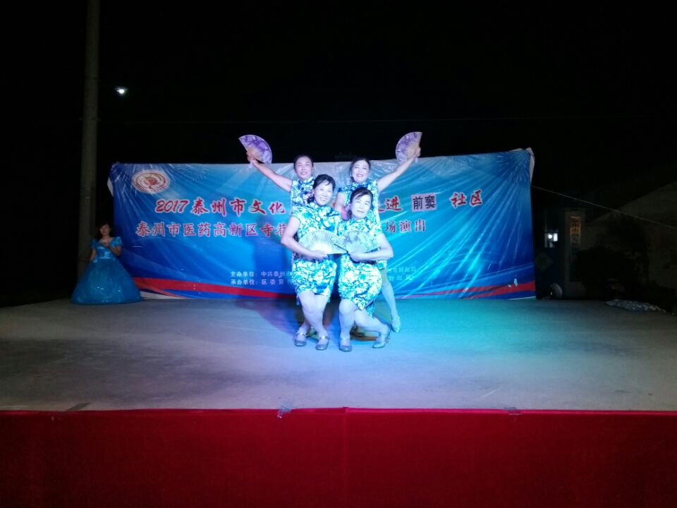 9月20日寺巷彩虹艺术团文化惠民专场演出走进海陵区苏陈镇前窦社区。晚上7点半在前窦社区广场准时开始,现场表演节目由《开门红》拉开序幕,紧接着是女生独唱、舞蹈 、表演说唱《赞家乡》小品、戏曲选段等等,精彩的节目一个接一个,观众们掌声、喝彩声不断,寺巷彩虹艺术团演员们的精湛表演让居民们大开眼界,更让他们陶醉在优美的旋律中和欢快的舞步中,为了回报观众的热情观看,我们团决定加演了两个节目,一个是快板,一个是舞蹈,最后在《难忘今宵》中结束这场演出,得到大家的一致好评。并且还得到明年的再次相约。