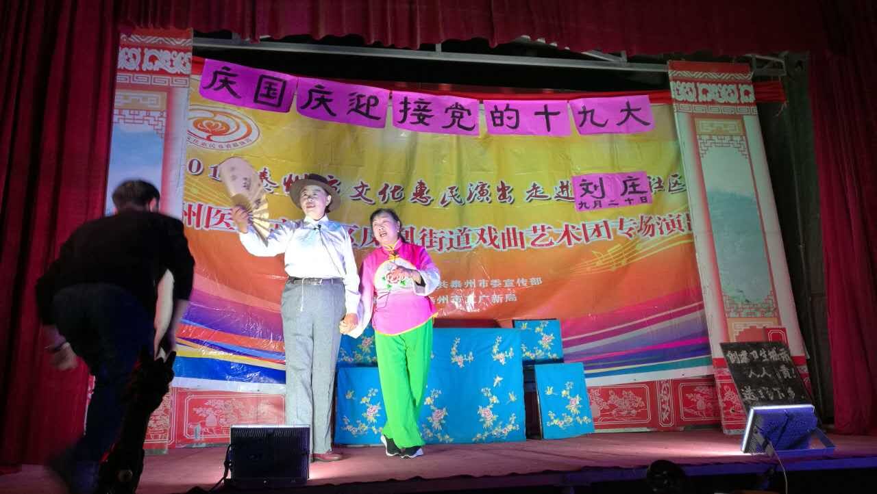 ,舞台布置完毕,当地群众都过来询问演出节目。在全体演出人员的精心准备下,给刘庄社区的居民带来了一场精彩的戏曲演出。演出结束后,社区居民邀请我们有机会再来演几场。