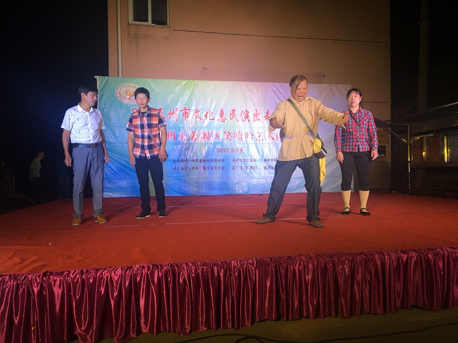 9月19日,姜堰区笑哈哈艺术团文化惠民专场演出走进大伦镇缪埭村。晚上7点演出在缪埭村村部村广场准时开始,现场表演的节目有舞蹈《红红火火大中华》、莲花落说唱《莲花一打笑哈哈》、方言韵白《路在脚下》《回乡》《老娘舅》萨克斯演奏《北国之春》、表演《回娘家》、天津快板《有话好好说》、相声《趣说泰州话》、表演唱《财政惠民乐农家》、以及独唱等11种形式、12个节目。整台演出时长115分钟,观众约500人左右。节目形式多样、内容丰富,尤其相声、快板、喜剧小品、方言韵白等语言类特色节目赢得了观众的阵阵笑声和掌声,受到村干部、群众的一致好评。