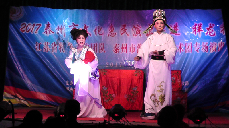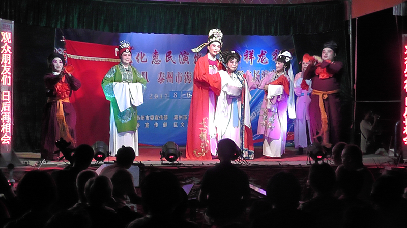 泰州市海陵戏曲艺术团于2017年8月6日晚7点30分在医药高新区明珠街道祥龙社区文化广场演出大型优秀传统扬剧——《逃婚的新娘》。我团参演人员25人,由于祥龙社区积极宣传,前来看戏的群众近200人,人民需要文化,文化需要人民,演出现场气氛热烈,观众掌声不断,演出取得圆满成功,这更加激起我们为老百姓排好戏、演好戏、唱好戏的决心。