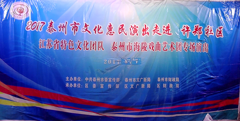 泰州市海陵戏曲艺术团于2017年8月7日晚7点30分在海陵区京泰路街道许郑社区文化广场演出大型优秀传统扬剧——《逃婚的新娘》。我团参演人员25人,由于许郑社区积极宣传,前来看戏的群众近100人,人民需要文化,文化需要人民,演出现场气氛热烈,观众掌声不断,演出圆满成功。这更加激起我们为老百姓排好戏、演好戏、唱好戏。把泰州市文化惠民演出活动锦上添花,更上一层楼。
