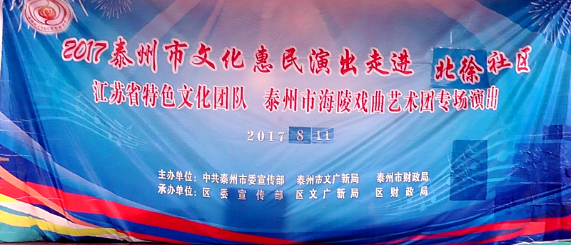 泰州市海陵戏曲艺术团于2017年8月11日晚7点30分在医药高新区明珠街道北徐社区文化广场演出大型优秀传统扬剧——《真假新郎》。我团参演人员25人,由于北徐社区积极宣传,前来看戏的群众近250人,人民需要文化,文化需要人民,演出现场气氛热烈,观众掌声不断,演出取得圆满成功,这更加激起我们为老百姓排好戏、演好戏、唱好戏的决心。