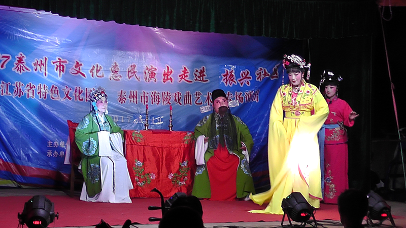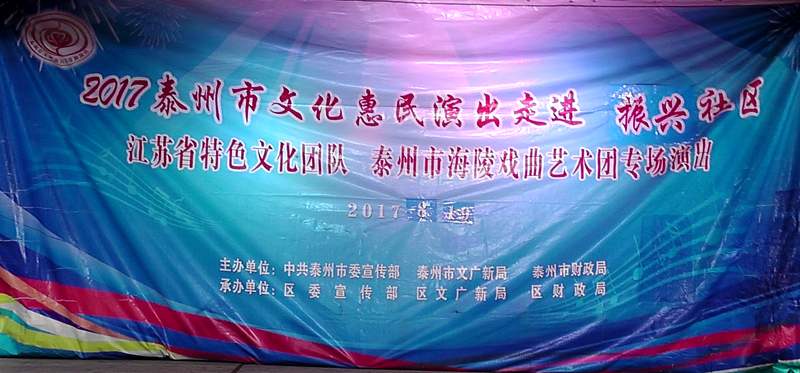 泰州市海陵戏曲艺术团于2017年8月19日晚7点30分在医药高新区凤凰街道振兴社区文化广场演出大型优秀传统扬剧——《碧玉簪》。我团参演人员25人,由于振兴社区积极宣传,前来看戏的群众近250人,人民需要文化,文化需要人民,演出现场气氛热烈,观众掌声不断,演出取得圆满成功,这更加激起我们为老百姓排好戏、演好戏、唱好戏的决心。