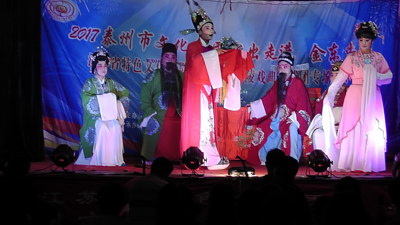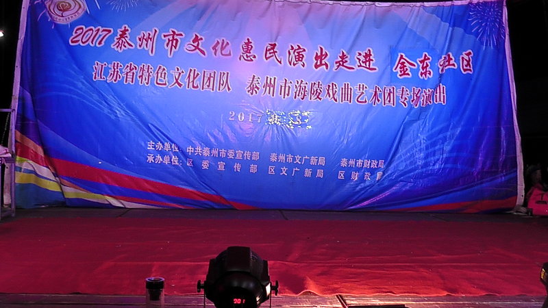 泰州市海陵戏曲艺术团于2017年9月8日晚7点30分在海陵区京泰路街道金东社区文化广场演出大型优秀传统扬剧——《碧玉簪》。我团参演人员25人,由于金东社区积极宣传,前来看戏的群众近300人,人民需要文化,文化需要人民,演出现场气氛热烈,观众掌声不断,演出圆满成功。这更加激起我们为老百姓排好戏、演好戏、唱好戏。把泰州市文化惠民演出活动锦上添花,更上一层楼。