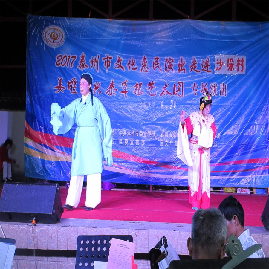 9月28日晚,姜堰区兴泰草根文化艺术团为沙垛村村民举行文化惠民专场演出。艺术团带来了歌舞、小品、戏剧、说唱、快板等多种形式的文艺节目,热情的观众对艺术团的演出不时报以热烈的掌声,送来的茶水更是激发了演员们的激情。整场演出100分钟,台下300多观众给予了极高的评价。