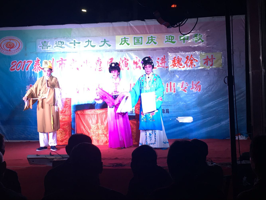 2017泰州市文化惠民演出走进海陵区城东街道许郑魏徐村,海陵区小鹰扬剧团专场演出,2017年9月23日晚上在海陵区城东街道魏徐村法华寺广场成功举办。本场演出应村领导要求,演出的剧目为大型传统扬剧《分裙记》上下集,演出时长180分钟,演员们精彩的的表演博得了观众的阵阵掌声。演出很成功!感谢村领导提供全方位的服务。