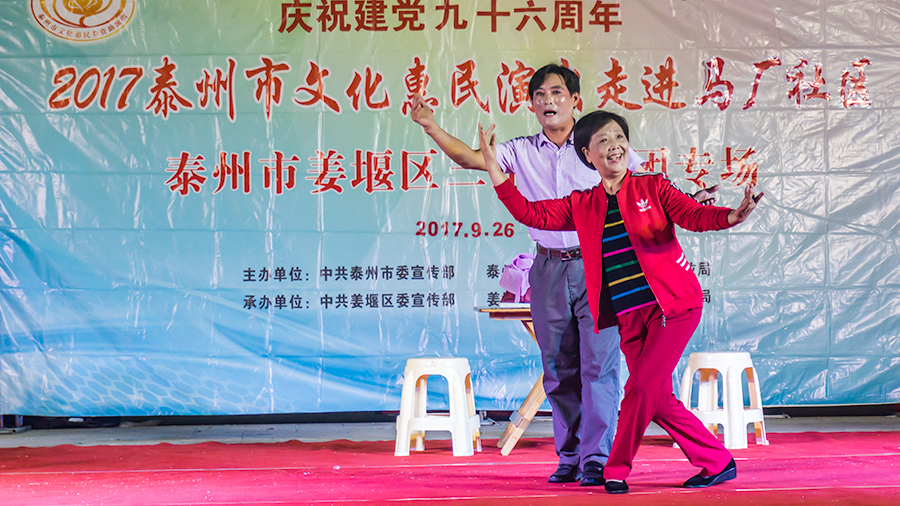 2017年9月26日应姜堰区三水街道马厂村的盛情相邀,姜堰区三水艺术团来到马厂村百姓大舞台进行文化惠民演出。村民们听到音乐响起有的拿着橙子、有的扶老携幼来到百姓大舞台前等候观看演出。晚七时演出正式开始。艺术团准备了丰富多彩的文艺节目。有器乐合奏、独奏,有男、女声独唱,有小品,有戏曲,有舞蹈、朗诵等。村民看了拍手叫好。演出时长110分钟,观众近500人。