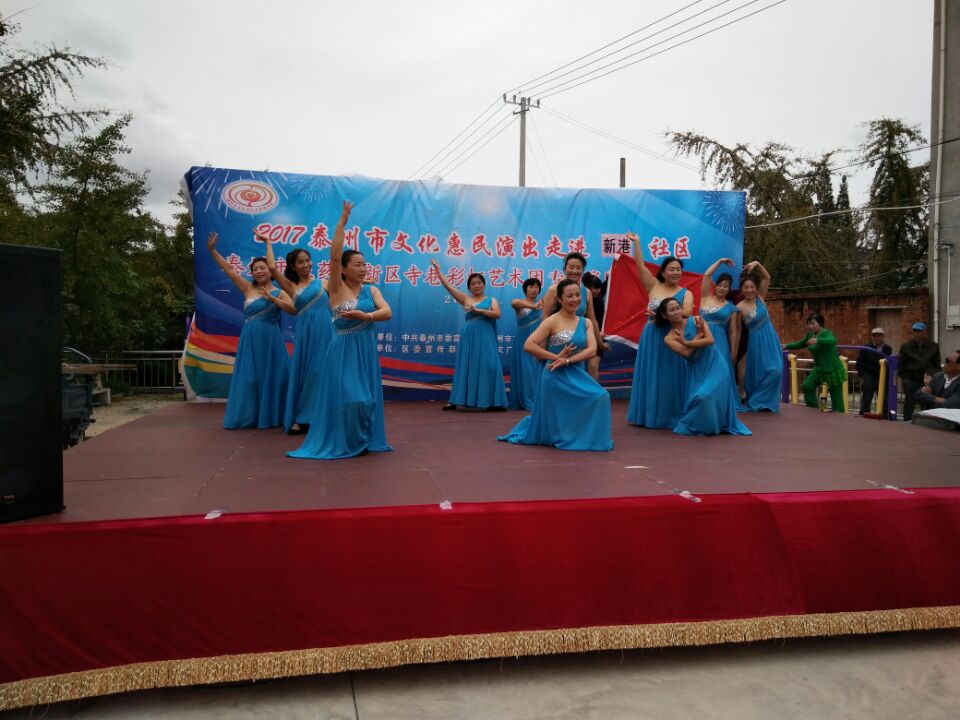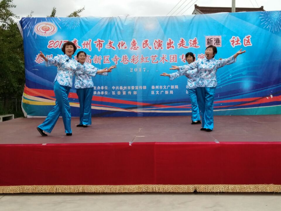 10月2日,寺巷彩虹艺术团文化惠民专场演出走进寺巷街道新港社区。演出于下午1点半在新港社区广场准时开始,现场表演节目由《红红火火大中华》拉开序幕,紧接着是女生独唱、舞蹈 、表演说唱、小品、戏曲选段等等,精彩的节目一个接一个,观众们掌声、喝彩声不断,寺巷彩虹艺术团演员们的精湛表演让居民们大开眼界,更让他们陶醉在优美的旋律和欢快的舞步中,演出最后在《歌唱祖国》中结束,得到大家的一致好评。