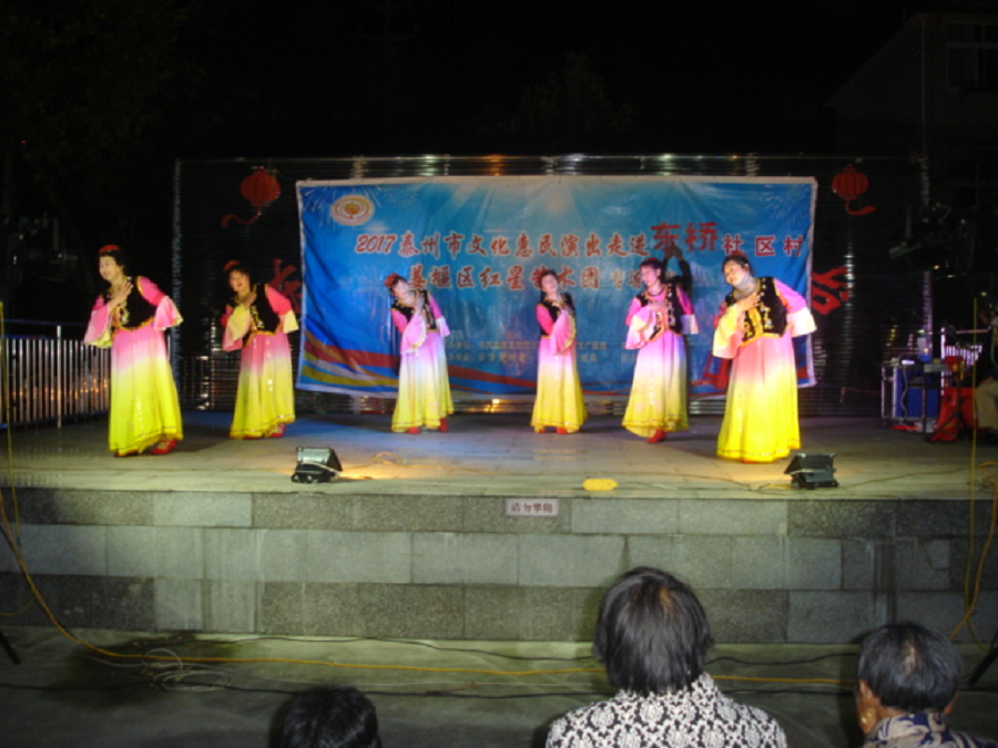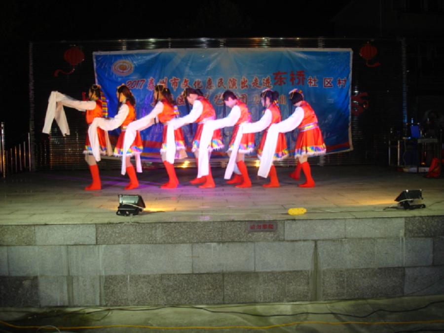 姜堰区红星艺术团走进东桥村惠民演出,受到村民们热情接待,晚上村民们早早的就来到场地,7点不到场地上坐满了观众,灯火通明台上台下欢歌笑语,欢乐融融!