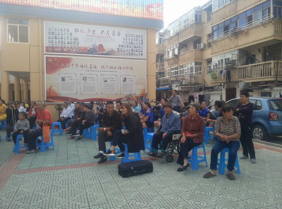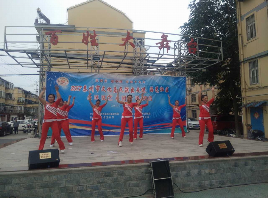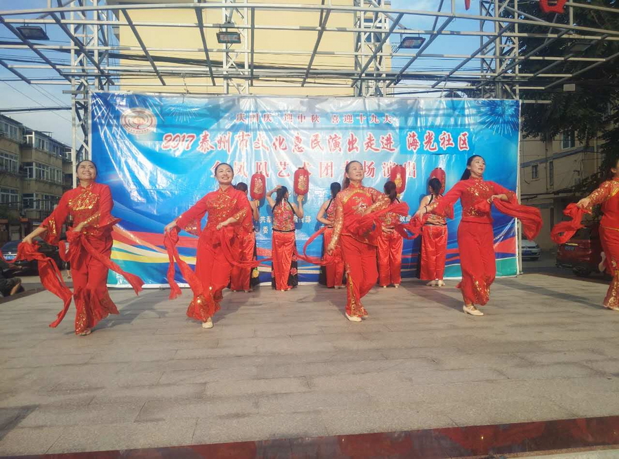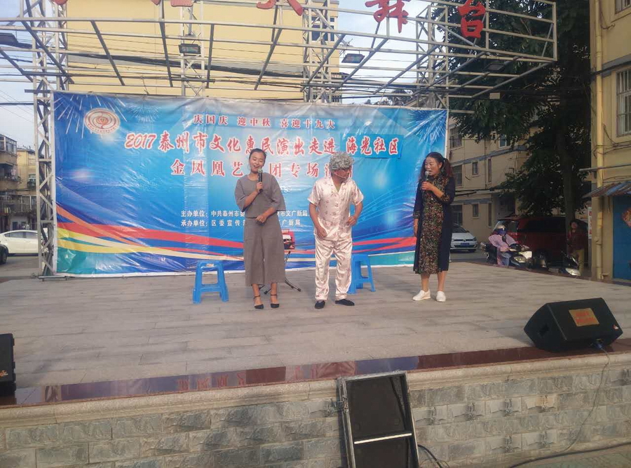 9月28日下午3:30,金凤凰艺术团走进海光社区,开展“迎国庆、庆中秋”双节活动,演出在海光社区民乐队的表演中开始,民乐队得知金凤凰艺术团来演出,也要求露一手,给此次演出增添了精彩一幕,演出在一片叫好声中完美结束。金凤凰艺术团全体演职员衷心感谢社区观众和乐队的配合!