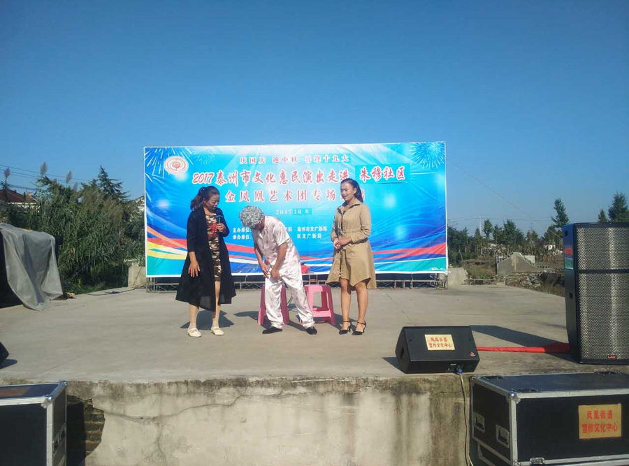 10月6日下午两点,金凤凰艺术团文化惠民“庆国庆中秋”演出走进医药高新区凤凰街道朱穆社区,演员们精心准备了丰富多彩的节目,歌舞、小品、说唱、魔术、二胡、戏曲等系列节目一一呈现给社区观众,给“双节”带了热烈的节日气氛,给社区观众带来了饕餮的精神大餐。