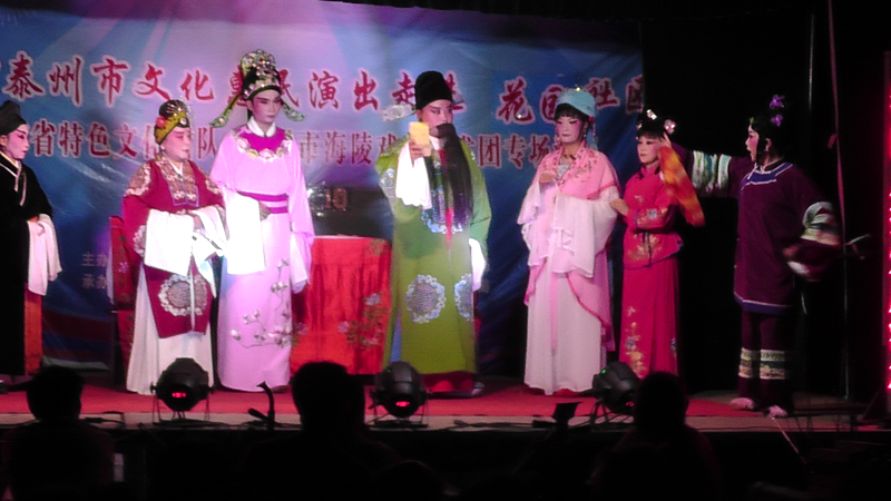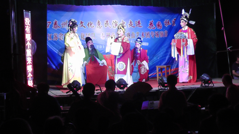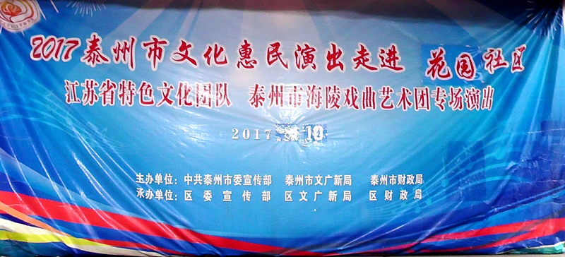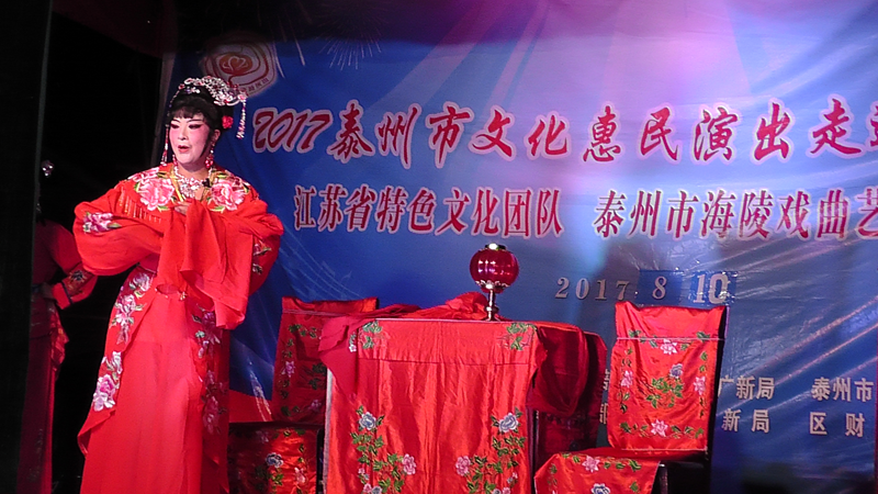 泰州市海陵戏曲艺术团于2017年8月10日下午13点30分在海陵区城东街道花园社区文化广场演出大型优秀传统扬剧——《碧玉簪》。我团参演人员25人,由于花园社区积极宣传,前来看戏的群众近250人,人民需要文化,文化需要人民,演出现场气氛热烈,观众掌声不断,演出圆满成功。这更加激起我们为老百姓排好戏、演好戏、唱好戏。把泰州市文化惠民演出活动锦上添花,更上一层楼。