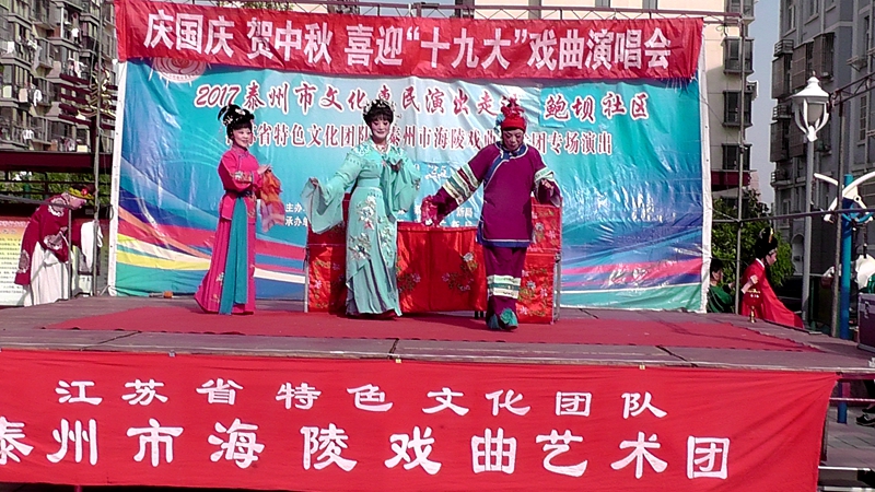 泰州市海陵戏曲艺术团于2017年9月25日下午14点30分在海陵区城东街道鲍坝社区文化广场演出大型优秀传统扬剧——《碧玉簪》。我团参演人员25人,由于鲍坝社区积极宣传,前来看戏的群众近200人,人民需要文化,文化需要人民,演出现场气氛热烈,观众掌声不断,演出圆满成功。这更加激起我们为老百姓排好戏、演好戏、唱好戏。把泰州市文化惠民演出活动锦上添花,更上一层楼。