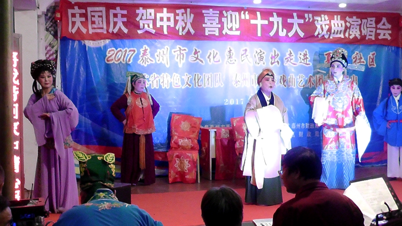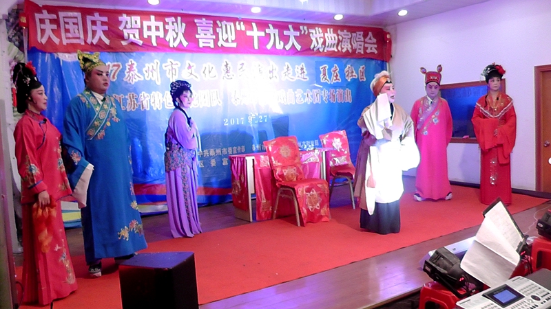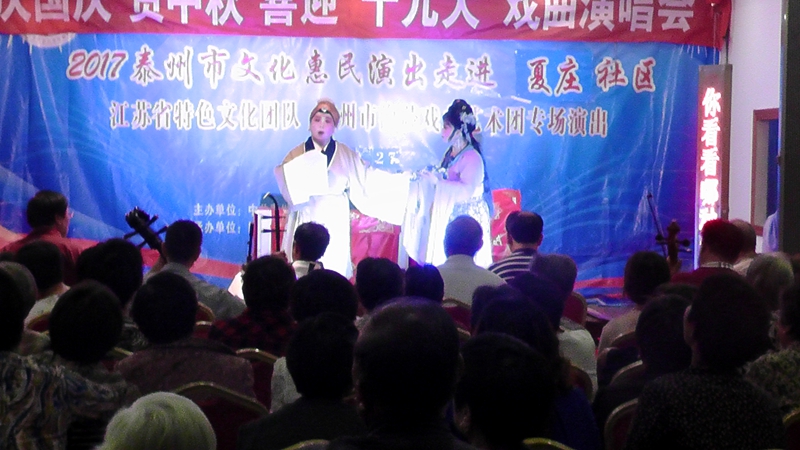 泰州市海陵戏曲艺术团于2017年9月27日下午19点30分在海陵区罡杨镇夏庄村室内舞台演出大型优秀传统扬剧——《夜明珠》。我团参演人员25人,由于夏庄村积极宣传,前来看戏的群众近300人,人民需要文化,文化需要人民,演出现场气氛热烈,观众掌声不断,演出圆满成功。这更加激起我们为老百姓排好戏、演好戏、唱好戏。把泰州市文化惠民演出活动锦上添花,更上一层楼。