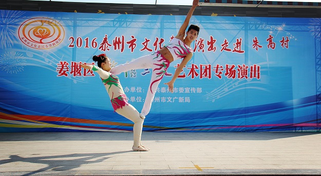 “激情三水”大舞台,作为江苏省农村精神文明创新案例品牌,已经取得较好的影响,成为姜堰地区乃至泰州地区的重要文化品牌,在姜堰地区家喻户晓,诚如主题歌里所唱的“激情三水大舞台,有梦想大家一起来”,小到幼儿园的小朋友,大到七八十岁的老人都喜爱等上“激情三水”大舞台,结合多方面优势,于2014年1月成立了“激情三水”艺术团.每年承办的活动场次不少于25场。首先,固定场地的“激情三水”大舞台文艺演出活动,比如“欢乐新春”专场,“六一”儿童节专场、“七一”专场,“八一”双拥专场、国庆专场、重阳节专场等等;第二是送文艺下乡活动,今年共计送了21场,全区的每个乡镇街道都留下了他们的身影,得到了老百姓的一致好评,为姜堰区的省级公共文化示范区创建做出了不小的贡献。