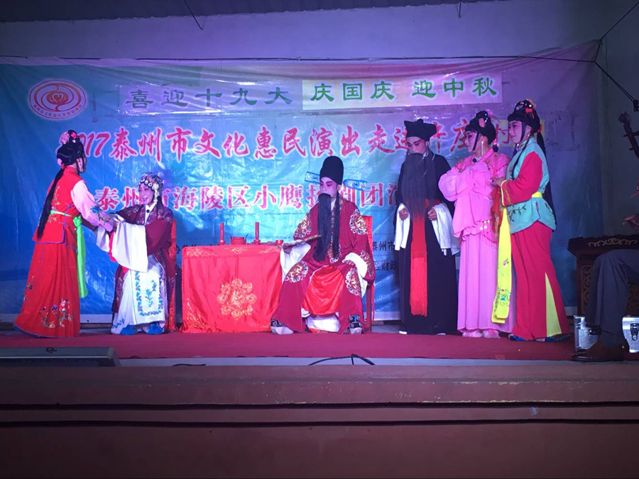 2017泰州市文化惠民演出走进姜堰区俞垛镇许庄村,海陵区小鹰扬剧团专场演出,2017年9月22日晚上在泰州市姜堰区俞垛镇许庄村百姓大舞台成功举办。本次演出剧目为传统扬剧《珍珠塔》,剧中姑妈妈的势利,嫌贫爱富的举动受到观众的谴责,剧情大义就是告诉世人,人穷不能穷一辈子,三十年河东转河西,姑妈嫌她侄儿方卿穷,上门来投亲,都不相认,并且说了好多刺激他的话,说他没有高官做,方卿后来励志苦读三年书,考举了头名状元,唱道情羞辱他的姑妈,让她改掉势利的坏习惯。演员们精彩的演出,博得了观众的阵阵掌声。演出很成功!感谢社区领导提供全方位的服务!