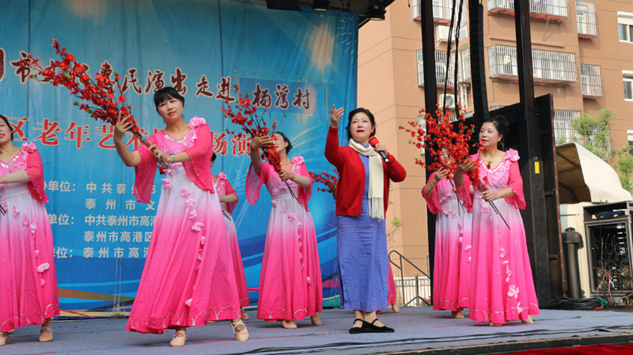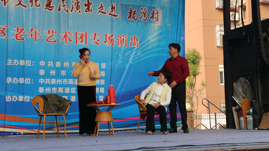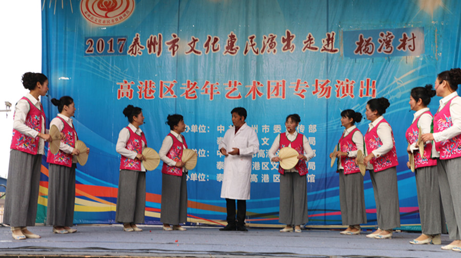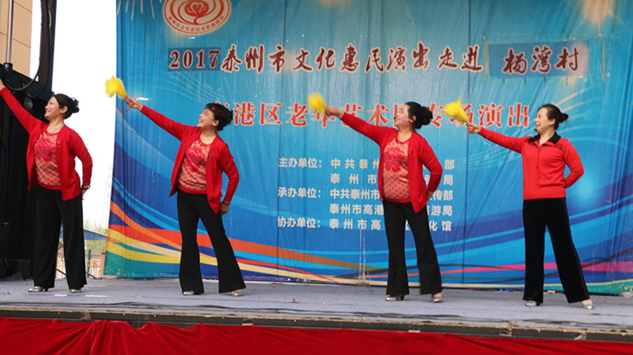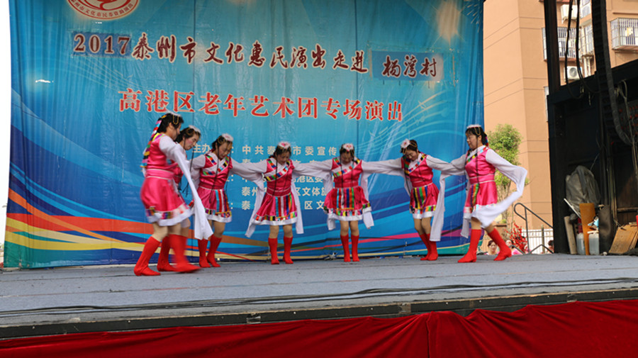 2017年10月21日,泰州市高港区老年艺术团文化惠民演出走进沿江街道杨湾社区,为社区的居民带来了美丽的歌声,欢乐的舞蹈,说唱表演和小品。演出期间观众们掌声不断,笑声不断,整场演出欢呼连连,演出结束后观众们不肯离去,充分肯定了我们高港老年艺术团节目的精彩度。
