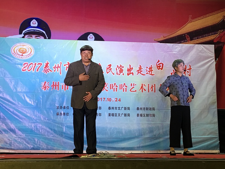 10月24日,姜堰区笑哈哈艺术团文化惠民专场演出走进白米村。晚上7点演出在白米村孔园学校准时开始,现场表演的节目有舞蹈《红红火火大中华》、莲花落说唱《莲花一打笑哈哈》、小品《二媳争婆》方言韵白《拐过弯来是幸福》相声《趣说姜堰话》萨克斯演奏《北国之春》、表演《回娘家》、天津快板《有话好好说》、表演唱《财政惠民乐农家》、以及独唱等11种形式、12个节目。整台演出时长120分钟,观众约900人左右。节目形式多样、内容丰富,尤其相声、快板、喜剧小品、方言韵白等语言类特色节目赢得了观众的阵阵笑声和掌声,受到村干部、群众的一致好评。