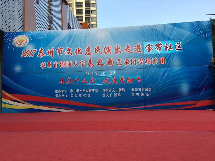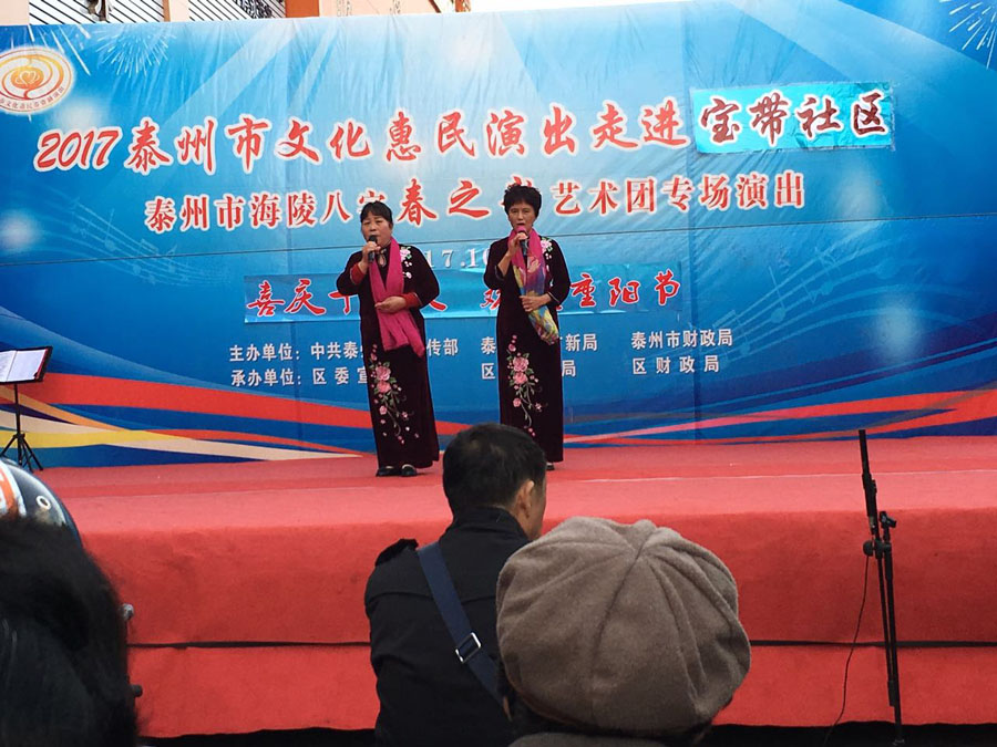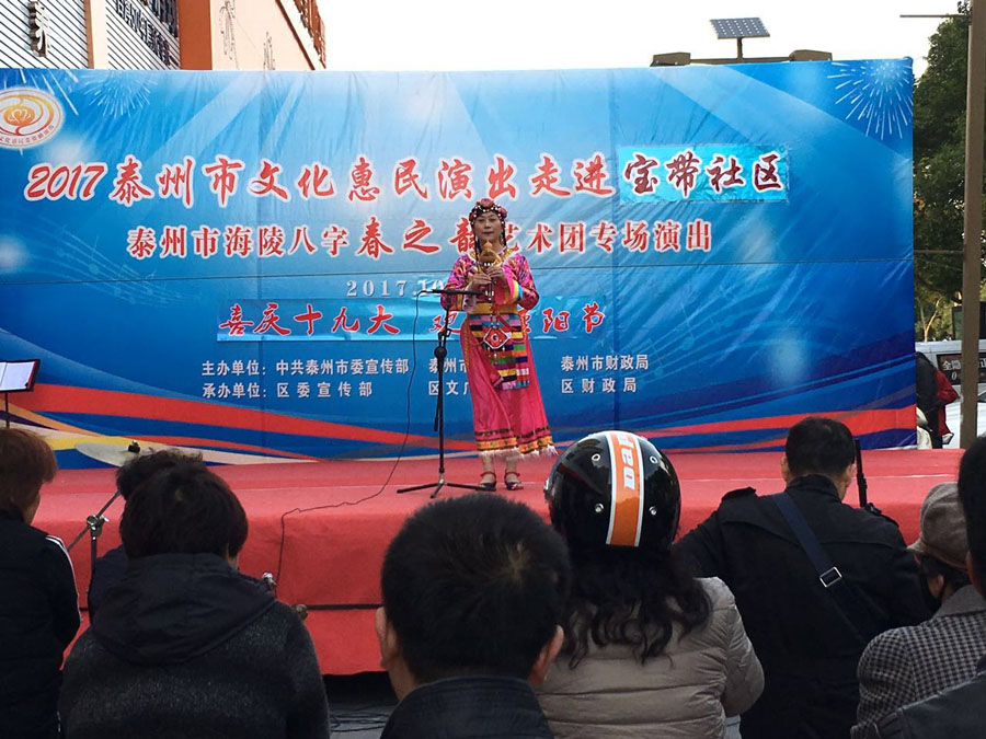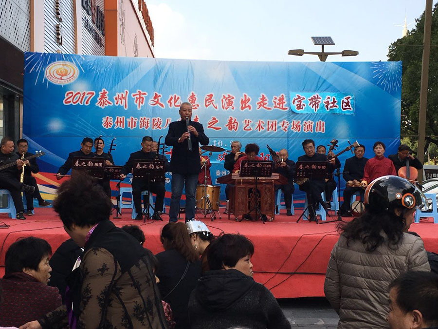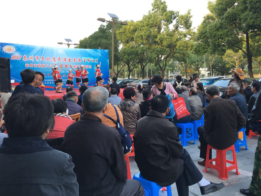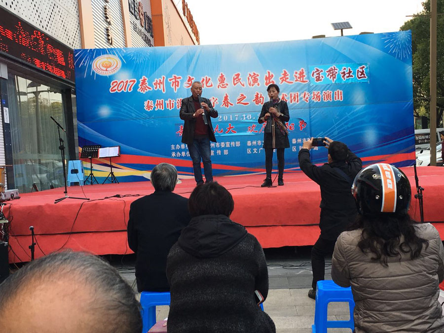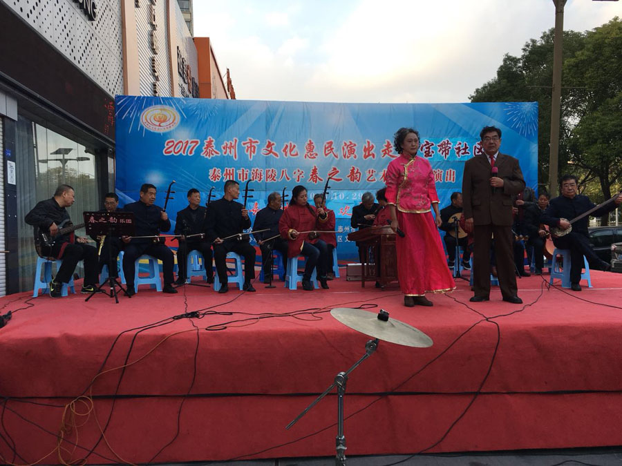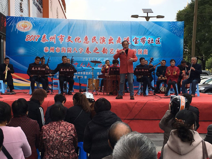 演出时间:2017年10月29日下午3:00 演出地点:海陵区城南街道万达小区东门 演出单位:海陵八字春之韵艺术中心