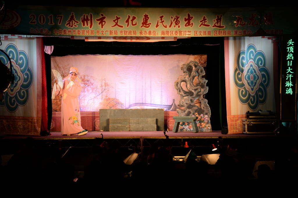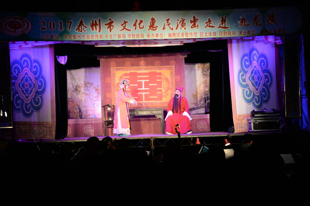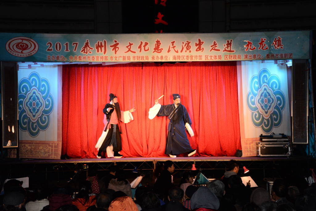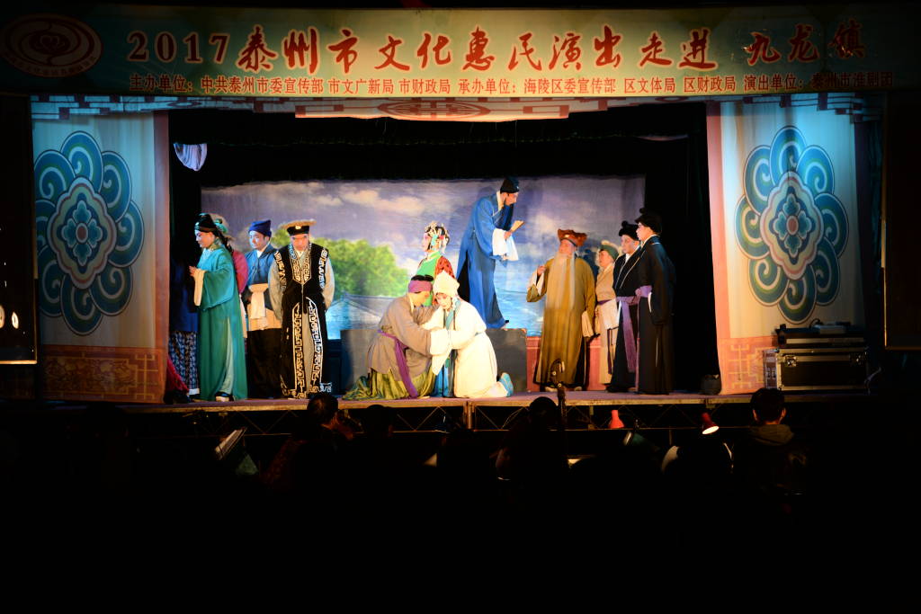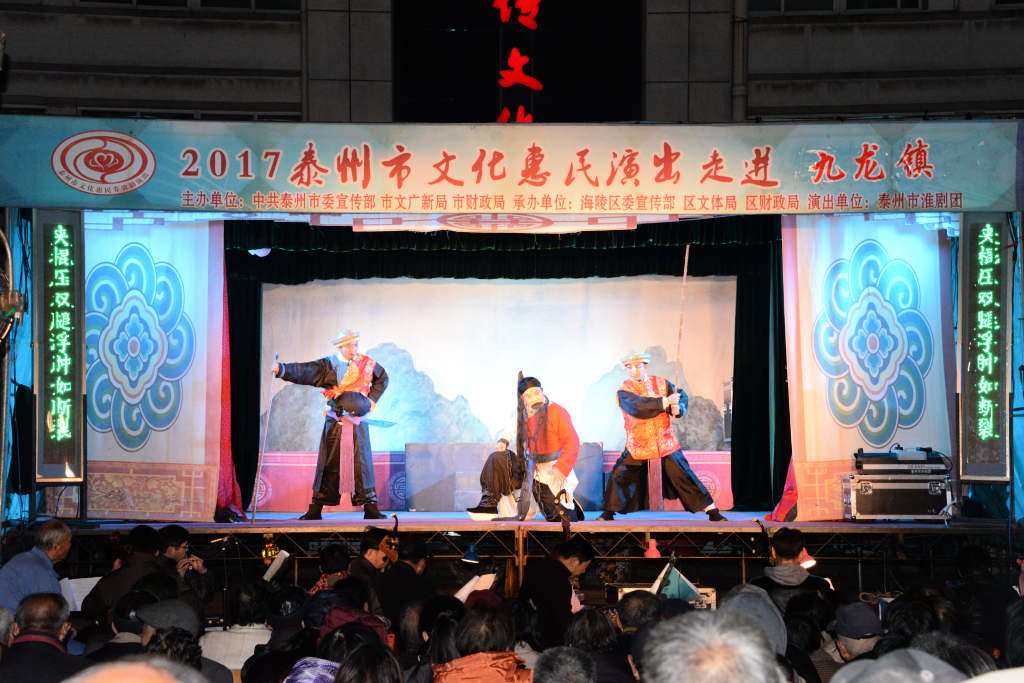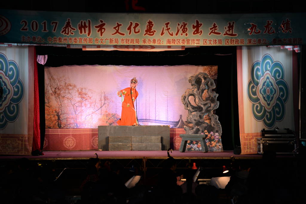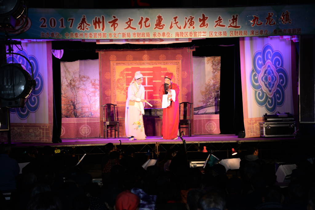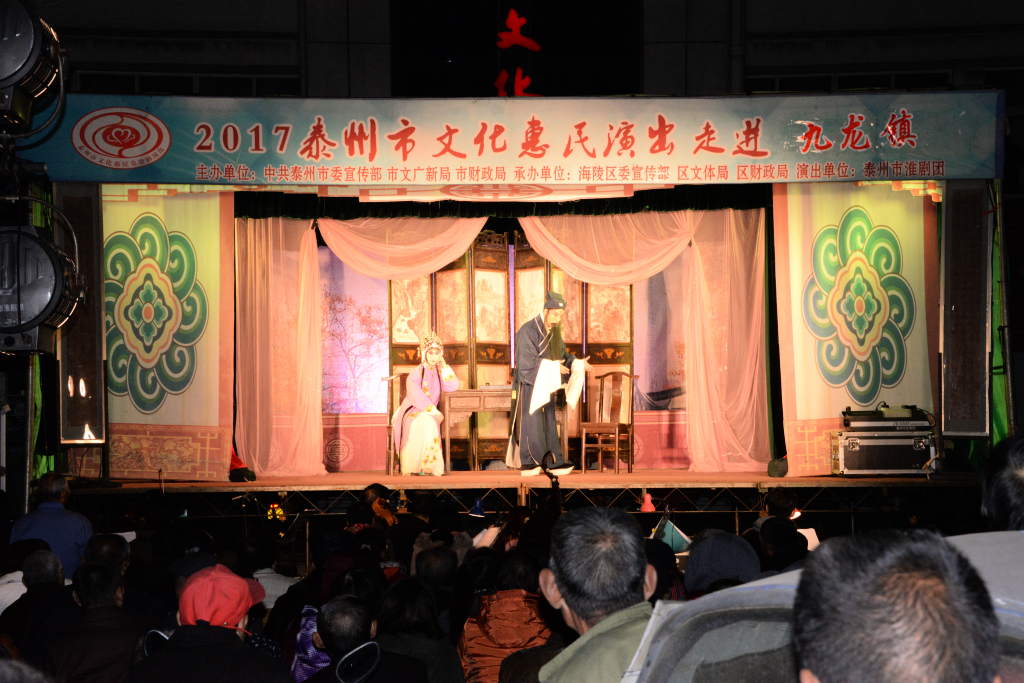 2017年10月29日泰州市淮剧团应海陵区九龙镇政府的邀请,文化惠民演出活动走进了九龙镇文化广场,为居民带来了一台久演不衰经典淮剧《阎惜姣》。深秋的夜晚虽然凉风习习,但是丝毫不减观众欣赏演出的热情。优美的音乐、美轮美奂的灯光布景及舞台上演员专业精湛的表演,赢得了观众数十次掌声,居民高秀兰讲:“到我们九龙来的大团小团演出很多,看来看去还是我们泰州淮剧团演出观众最多,因为泰州市淮剧团不管在哪里演出各个方面都很讲究、认真,从来不因为下乡演出就减演出质量。”我们听了人民发自内心的言语,给予我们的是一种鞭策,更是一种动力,今后我们将乘着“十九大”东风,认真贯彻“十九大”的精神,以“十九大”精神为方向指南。