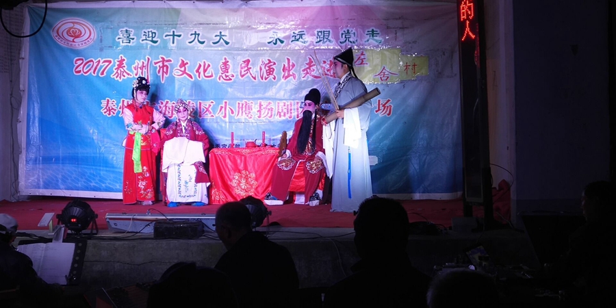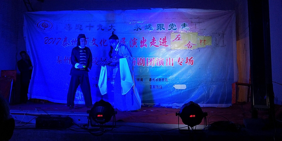 2017泰州市文化惠民演出走进左舍村,海陵区小鹰扬剧团专场演出,2017年10月21日晚上在姜堰市华港镇左舍村成功举办。本次演出剧目为传统扬剧