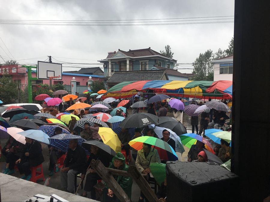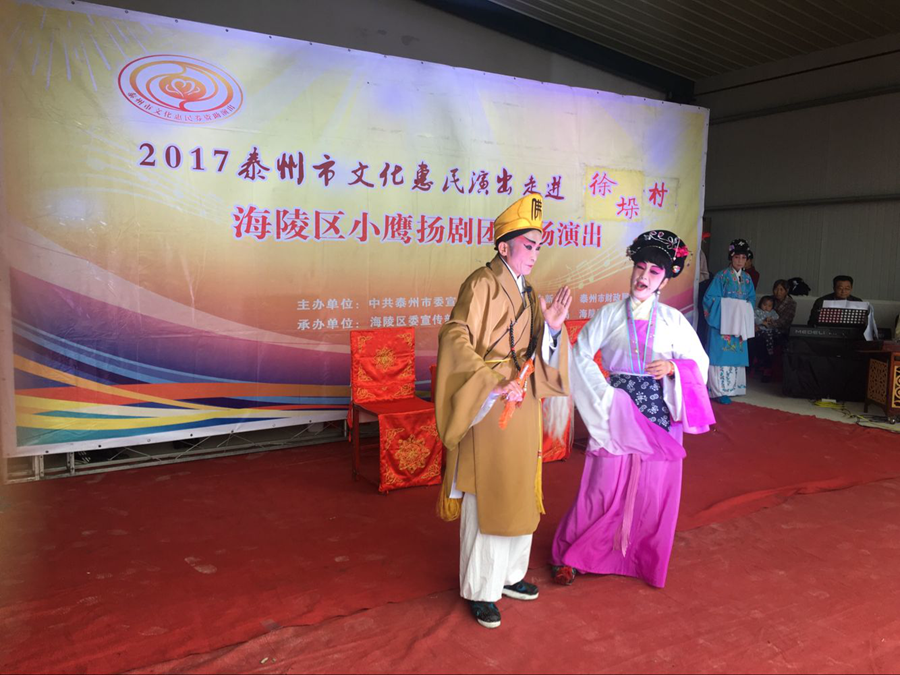 2017泰州市文化惠民演出走进姜堰区华港镇徐家垛村,海陵区小鹰扬剧团专场演出,2017年10月5日下午在姜堰区华港镇徐家垛村百姓大舞台成功举办。本场演出剧目为大型扬剧《分裙记》,此剧剧情跌宕起伏,曲折动人,外面虽然下着大雨但是丝毫没有减弱村民们看戏的热情,村领导为保证老百姓安心看戏,搭起了帐篷让大家很感动。演员们精彩的表演唱博得了观众的阵阵掌声。演出很成功!最后应观众要求又加演了安寿宝卖身选段。感谢村领导提供全方位的服务!