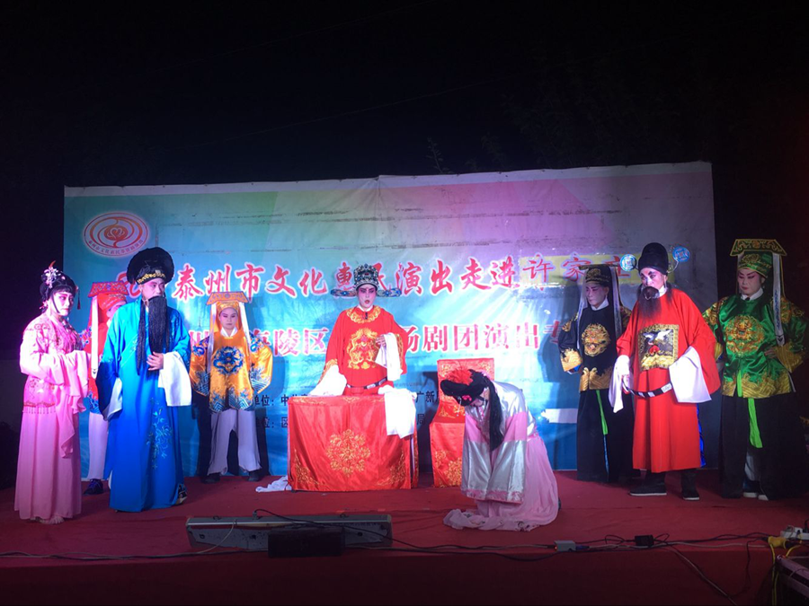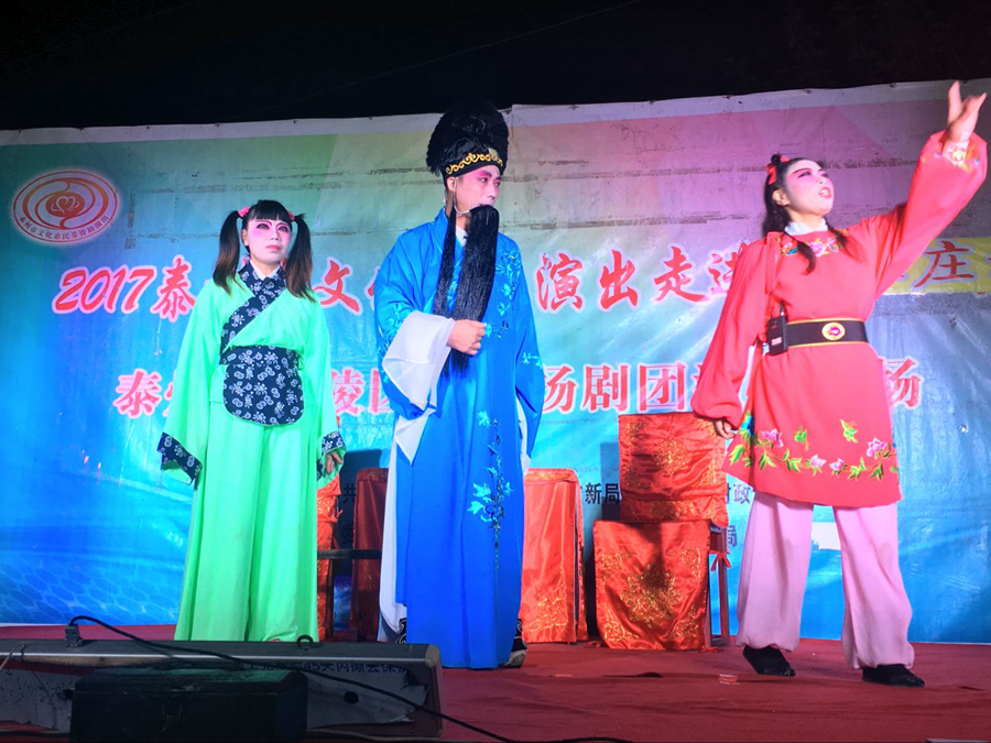 2017泰州市文化惠民演出走进姜堰区华港镇许家庄村,海陵区小鹰扬剧团专场演出,2017年10月6日晚上在姜堰区华港镇许家庄村百姓大舞台成功举办。本场演出剧目为大型古装扬剧《分裙记》上下集,此剧剧情跌宕起伏,曲折动人,最终坏人得到了应有的下场,演员们精彩的表演唱博得了观众的阵阵掌声。演出很成功!