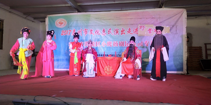 2017泰州市文化惠民演出走进野营社区,海陵区小鹰扬剧团专场演出,2017年10月13日在姜堰区华港镇野营村成功举办。本次演出剧目为传统扬剧《珍珠塔》,剧中姑妈妈的势利,嫌贫爱富的举动受到观众的谴责,剧情大义就是告诉世人,人穷不能穷一辈子,三十年河东转河西,姑妈嫌她侄儿方卿穷,上门来投亲,都不相认,并且说了好多刺激他的话,说他没有高官做,方卿后来励志苦读三年书,考举了头名状元,唱道情羞辱他的姑妈,让她改掉势利的坏习惯。剧中跌血一折将演出推向了高潮,演员们精彩的演出,博得了观众的阵阵掌声。演出很成功!感谢村领导提供全方位的服务!