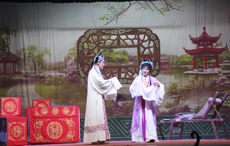 《孔雀东南飞》是我国汉乐府民歌中最杰出的作品,淮剧《孔雀东南飞》以其独特的视角和对经典剧作的时代审视,以21世纪的人文理念重新诠释了这一千古悲剧,为淮剧注入了新的创意,向观众展现了一个封建家庭爱情悲剧的全过程。作为悲剧的主人公,刘兰芝十七岁时嫁给庐江府小吏焦仲卿为妻,夫妻恩爱,但不被婆婆焦母所容,被休回家,兄长贪图富贵逼其改嫁,兰芝不从,乃自投清池。焦仲卿闻讯悲痛欲绝,也自缢殉情。整个剧情跌宕起伏,扣人心弦,“孔雀东南飞,五里一徘徊……”韵味十足的唱腔、声情并茂的表演,不仅展示了演员深厚的艺术造诣,也让观众领略了淮剧经典剧目的魅力,引得戏迷情不自禁地跟着节奏打起了节拍,低声吟唱,掌声、笑声、欢呼声响成一片,社区近千观众观看了演出。