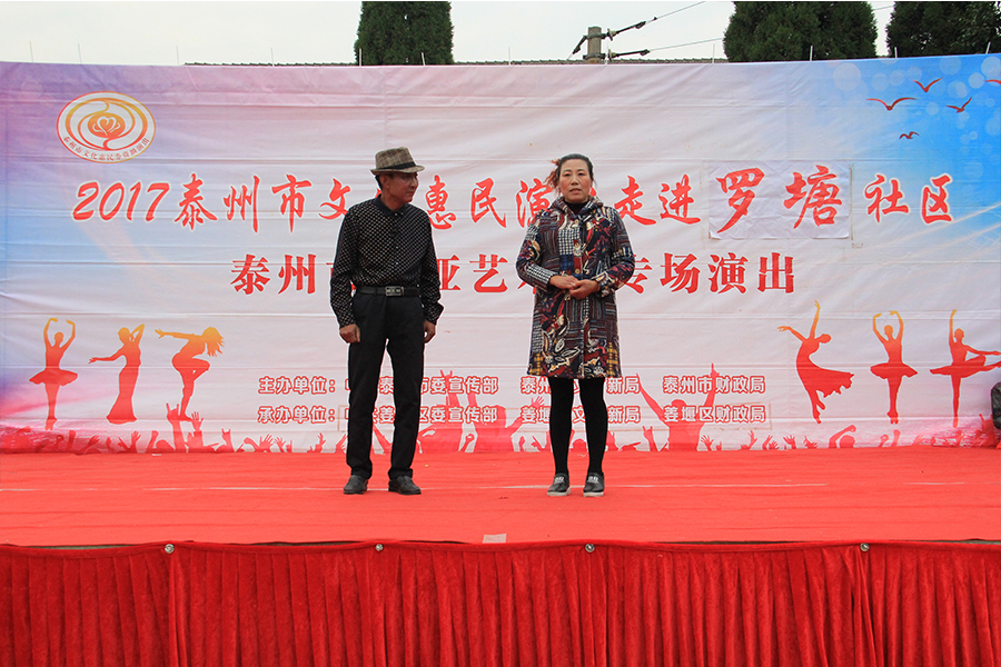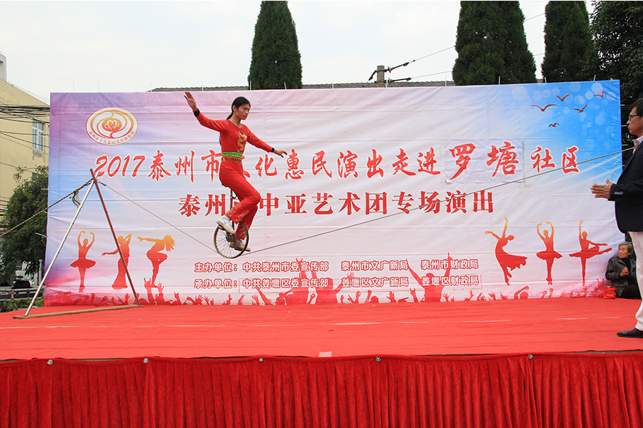2017泰州市文化惠民演出走进罗塘社区,泰州中亚艺术团专场演出,于10月26日下午在泰州市姜堰区罗塘社区成功举办。演员们精彩的演出,博得了观众的阵阵掌声。演出节目有戏剧、小品、杂技、魔术、舞蹈、歌伴舞、等众多精彩节目。最后感谢社区领导提供全方位的服务!