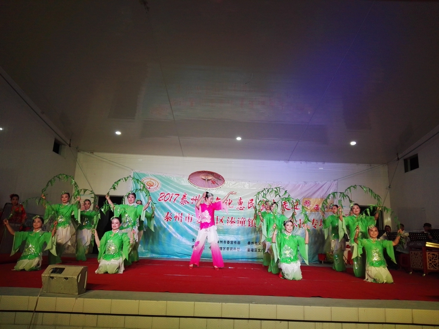 10月30日,秋高气爽姜堰区溱潼镇溱湖艺术团受溱潼镇文化站邀请,2017年泰州市文化惠民券专场演出于当天晚上6点30分,在湖西社区百姓大舞台上演。为适应观众不同层次的文化欣赏需求,溱湖艺术团精心策划了14个丰富多彩的文艺节目,随着悠扬的音乐响起,舞蹈《古镇秀溱湖美》拉开了演出序幕,当晚演出不仅有激情奔放的民歌与民舞,而且有耳熟能详的戏曲,淮剧《手捧枝头花香藕》,最后在歌伴舞《阳光路上》结束演出,整台演出效果好,弘扬社会正气,倡导诚实守信,气氛热烈,掌声不断,赢得了广大观众的一致好评。当天晚上演出观众太热情了,不得不加演节目,时长120分钟,观众达到500多人,当天晚上虽然天气降温,观众人数多,我们演员认真演出,优美而精彩的表演,给居民送去一份丰盛的文化大餐。