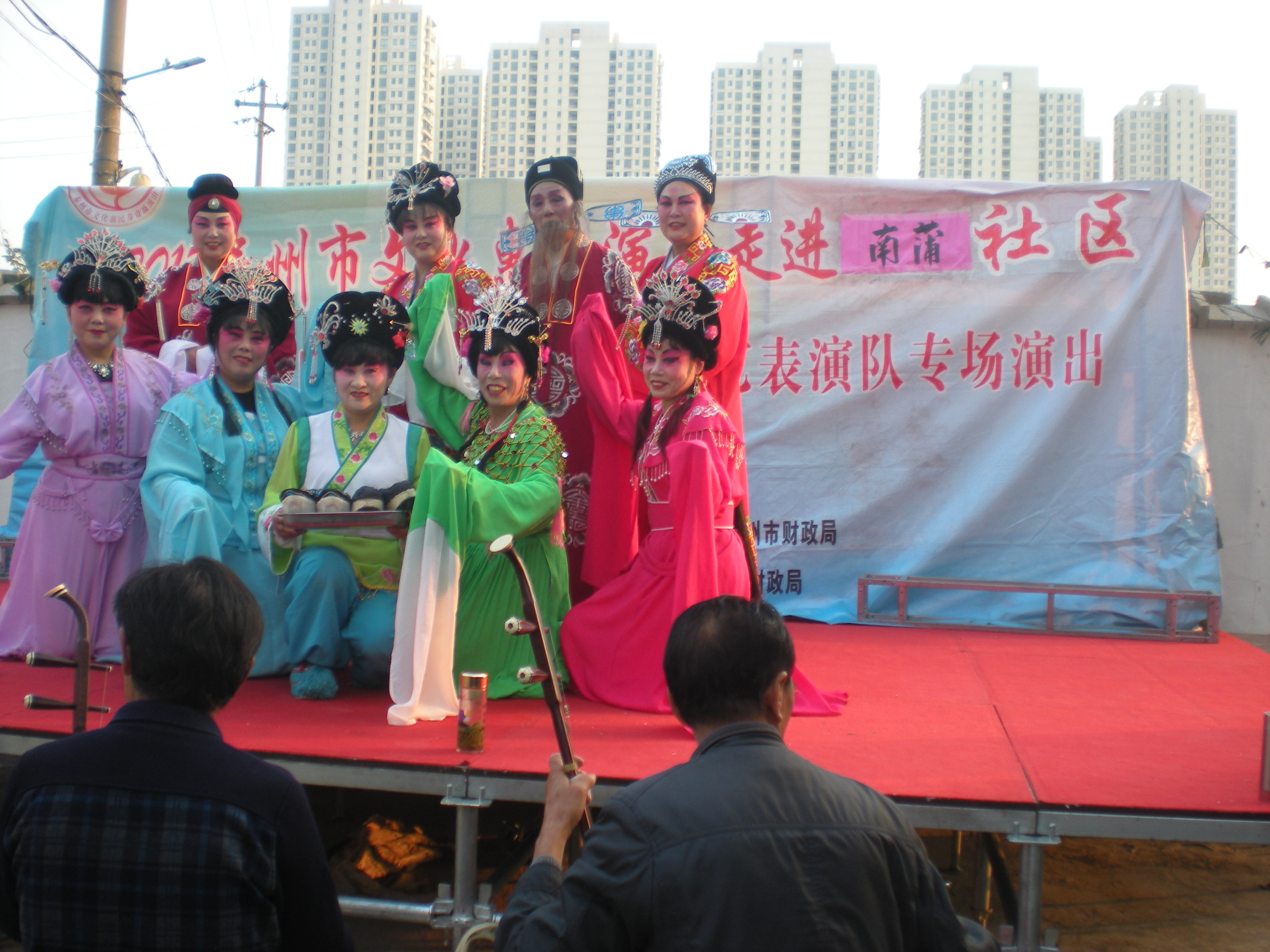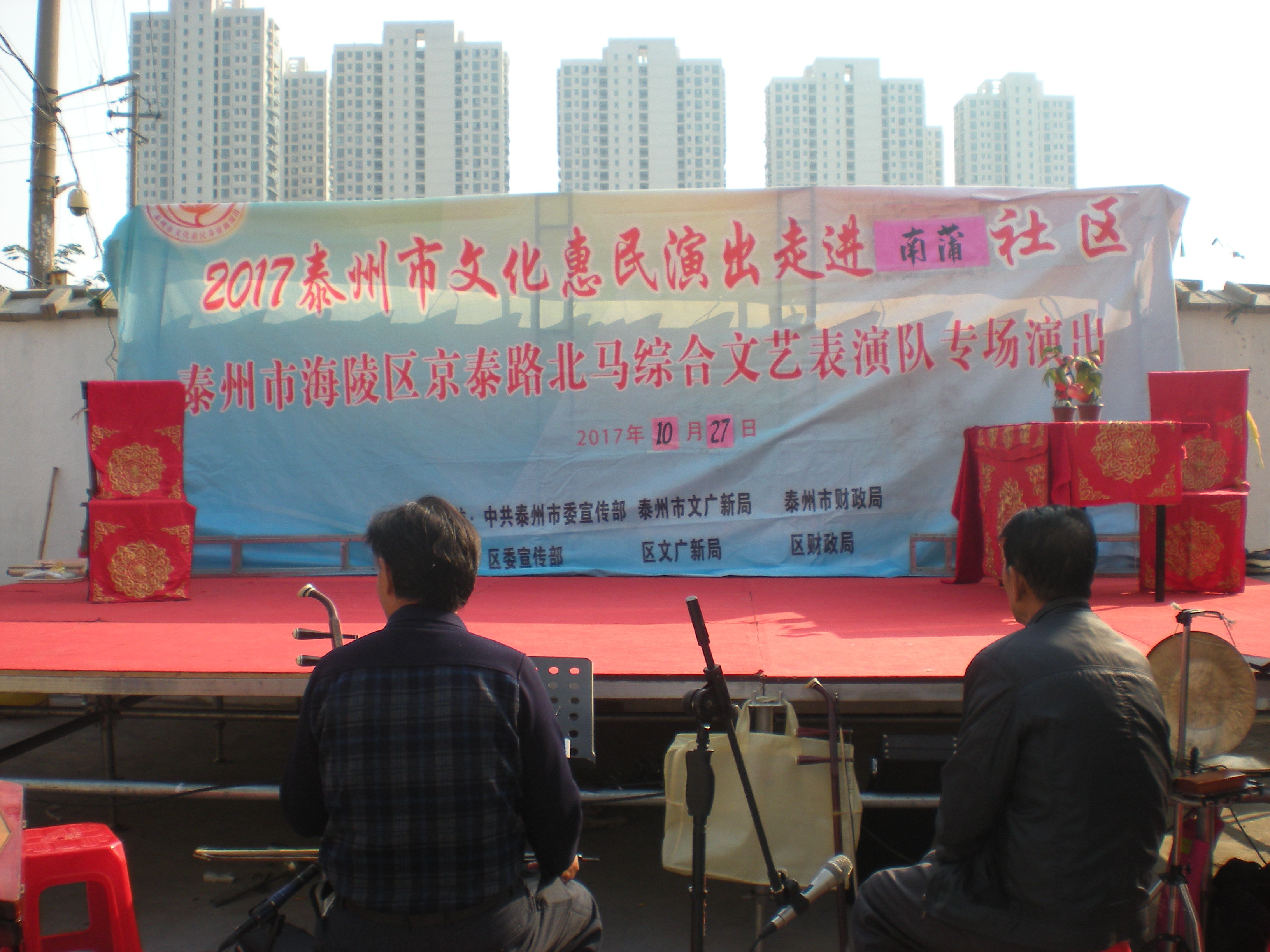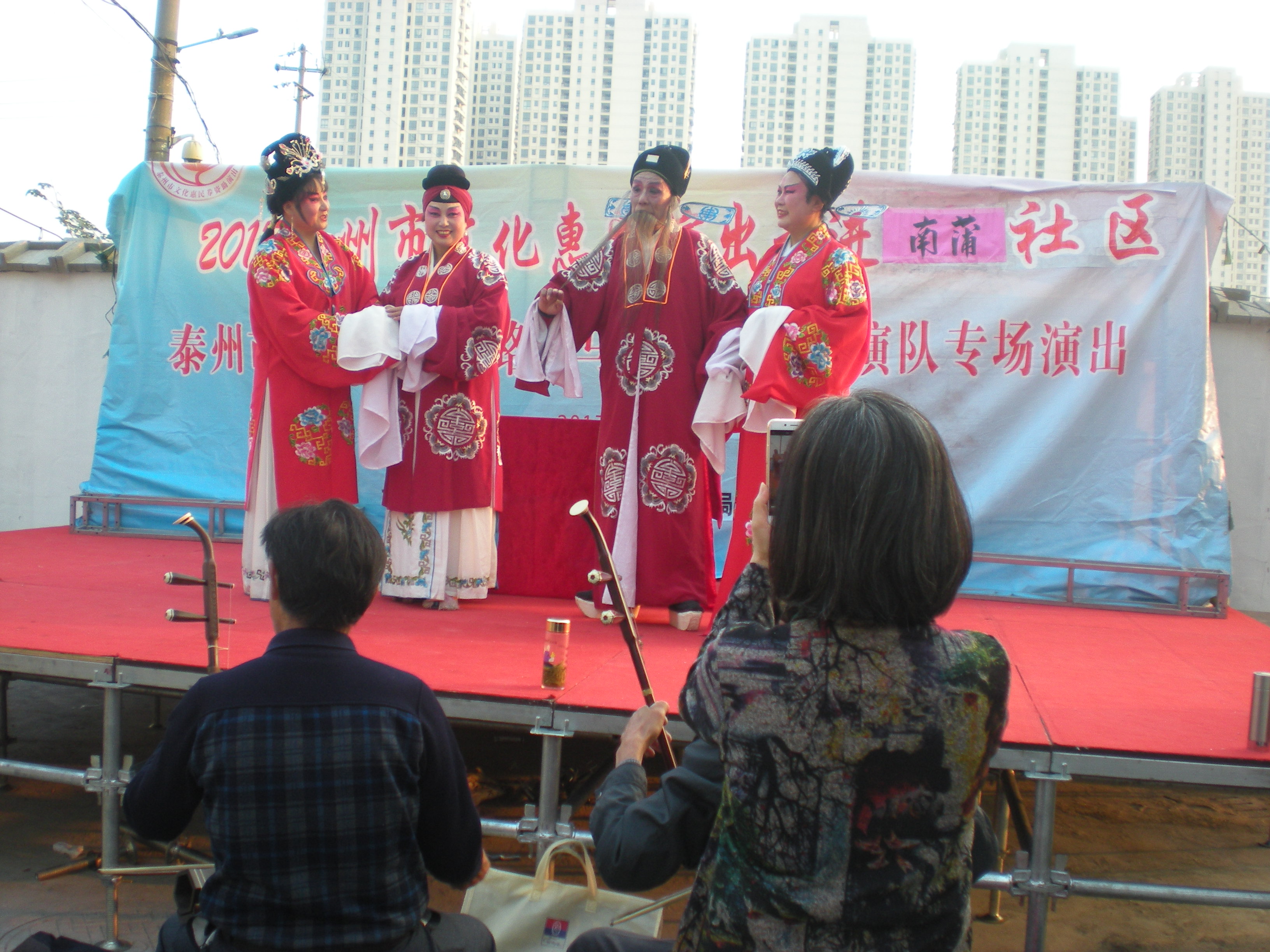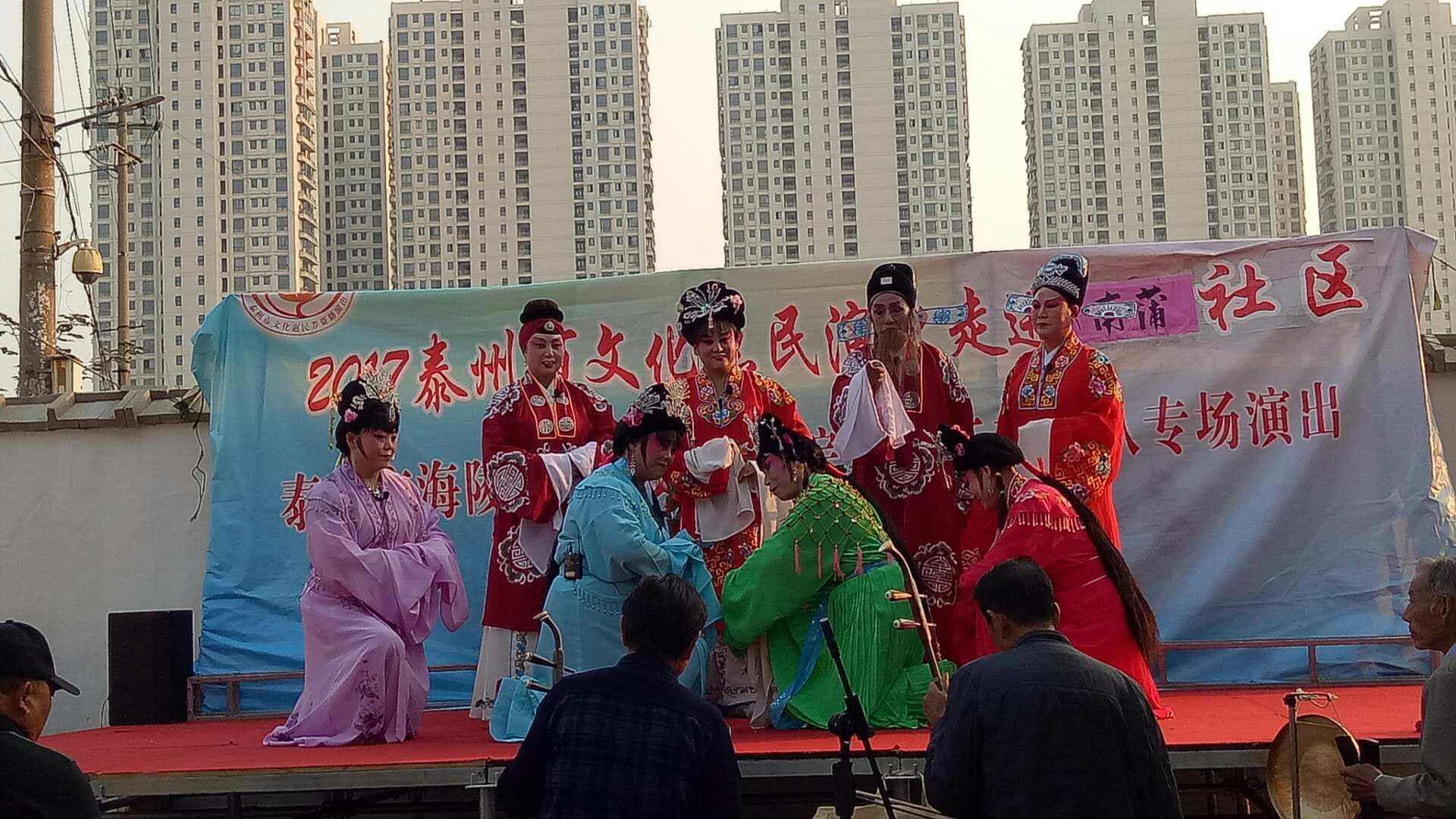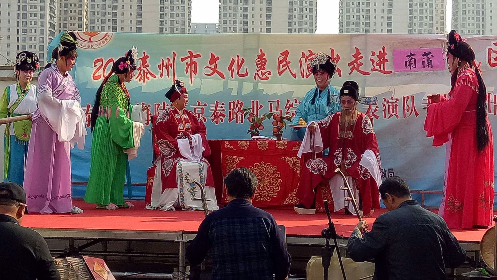 10月27日下午京泰路北马综合文艺表演队走进城中南蒲社区文化广场举办文化惠民演出。这场演出的曲目是扬剧《五女拜寿》,精彩演出和演员们的深厚功底以及精湛的演技赢得了居民们阵阵喝彩,居民们纷纷感慨不已。演出结束后,居民们纷纷表示这样的活动很好,一致认为这样的活动既丰富了文化生活,又宣扬了传统美德,这次戏曲在该社区演出受到居民们的一致好评,社区干部和文化志愿者服务周到,村民们希望惠民演出活动以后多多来社区演出。