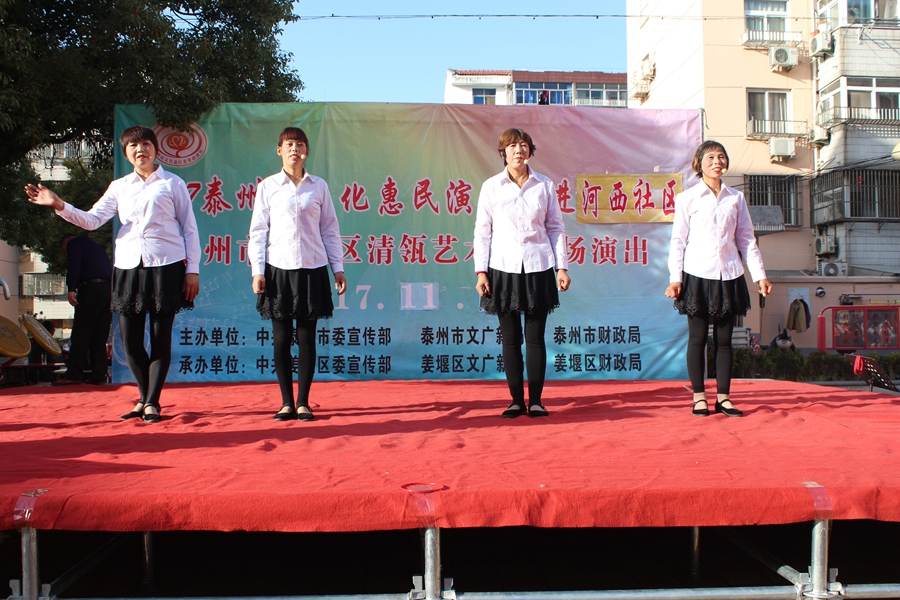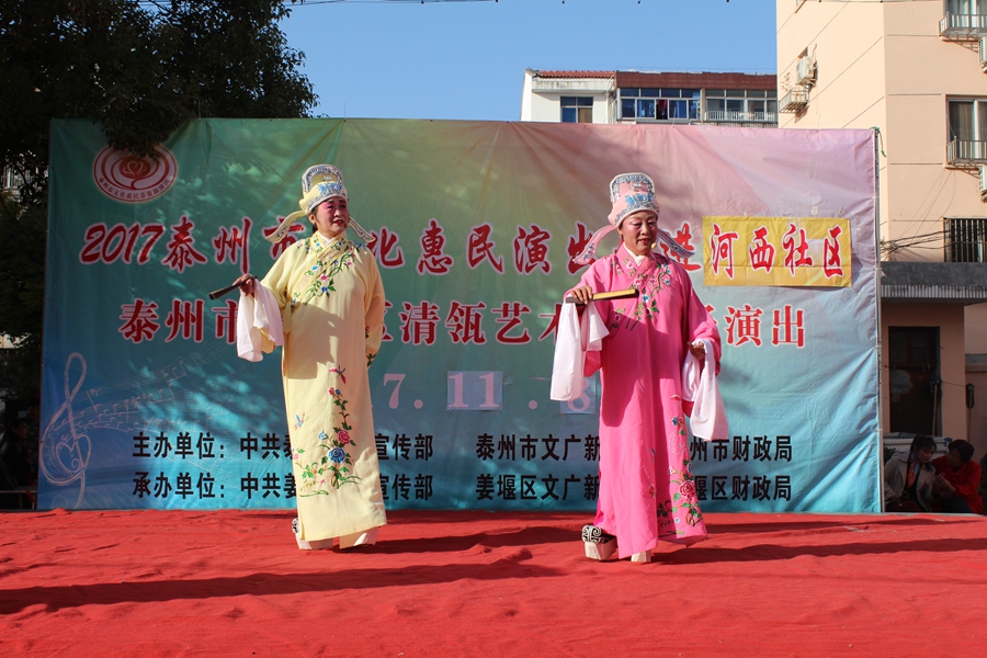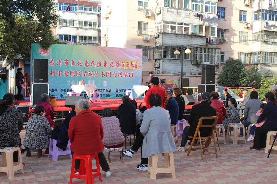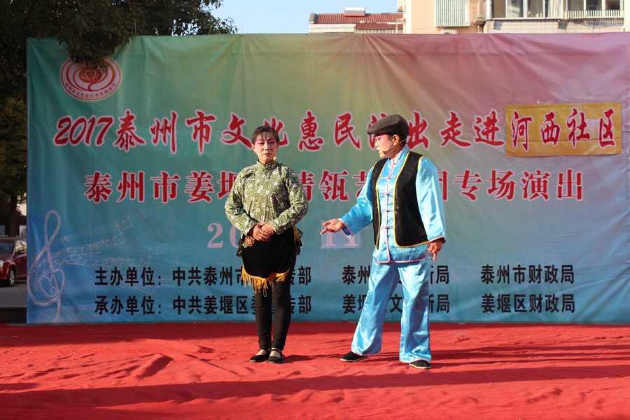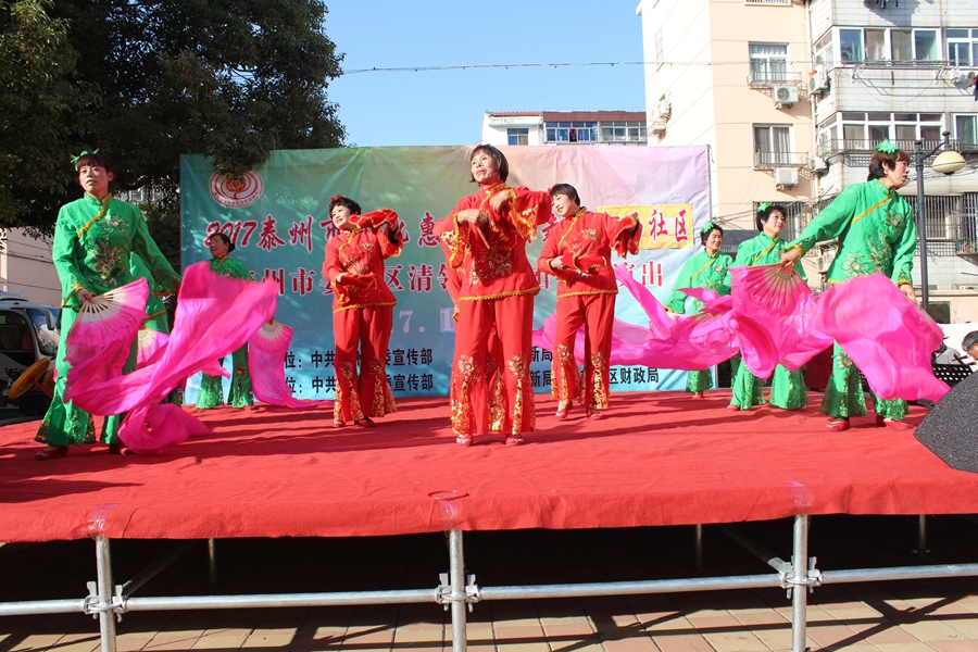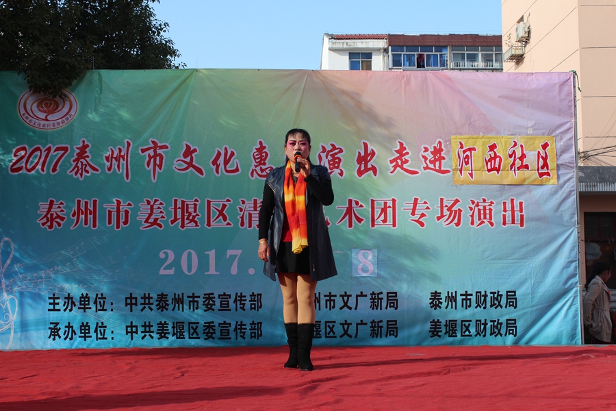 11.8日,姜堰区清瓴艺术团恵民演出走进罗塘街道河西社区,演出在舞蹈<<走进新农村>>中拉开帷幕,情景剧<<婆婆也是妈>>让台下旳观众深受感动,小品<<吵嘴>>赢得了广大观众的阵阵掌声和喝彩声,整场演出持续了近两个小时,受到了河西社区居民的一致好评。