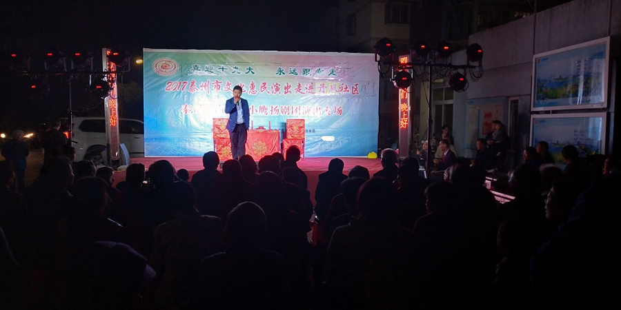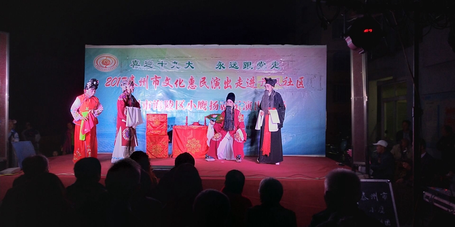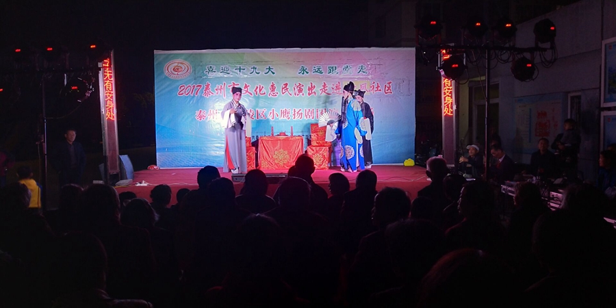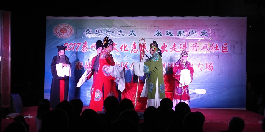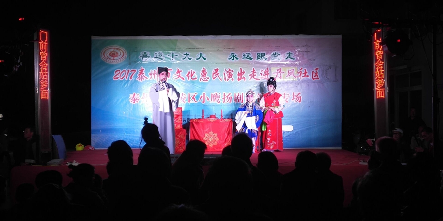 泰州市2017文化惠民演出走进医药高新区明珠道丹凤社区,海陵区小鹰扬剧团专场演出,于2017年10月19日晚上在泰州医药高新区明珠街道丹凤社成功举办。本次演出剧目为传统扬剧《珍珠塔》,剧中姑妈妈的势利,嫌贫爱富的举动受到观众的谴责,剧情大义就是告诉世人,人穷不能穷一辈子,三十年河东转河西,姑妈嫌她侄儿方卿穷,上门来投亲,都不相认,并且说了好多羞辱他的话,说他是穷鬼附身,永世没有官做,方卿后来励志苦读三年书,考举了头名状元,唱道情羞辱他的姑妈,让她改掉势利的坏习惯。最终合家团圆,并于表姐完婚。演员们精彩的演出,博得了观众的阵阵掌声。演出很成功!感谢社区领导提供全方位的服务!