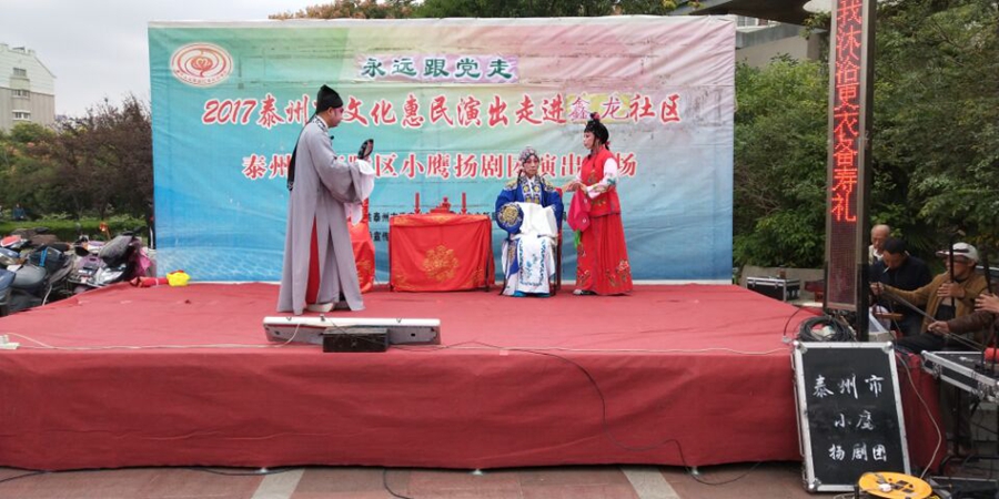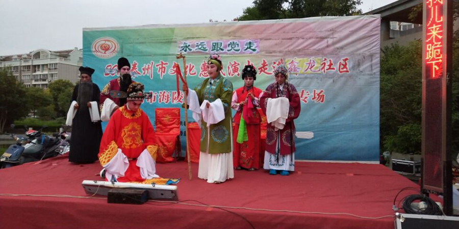 日晚上在泰州市海陵区城南街道鑫龙社区成功举办。本次演出剧目为传统扬