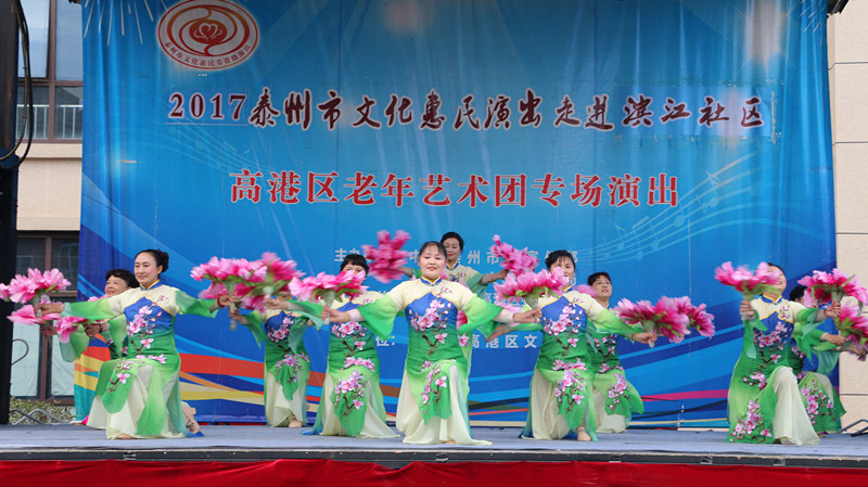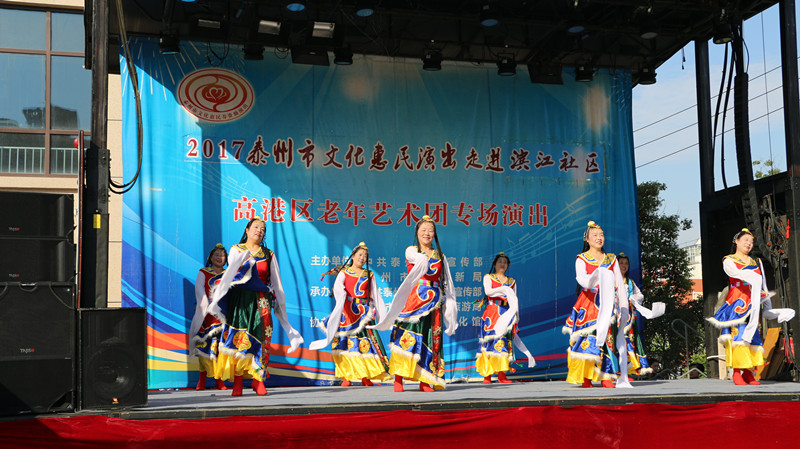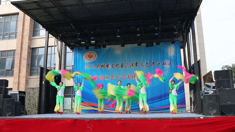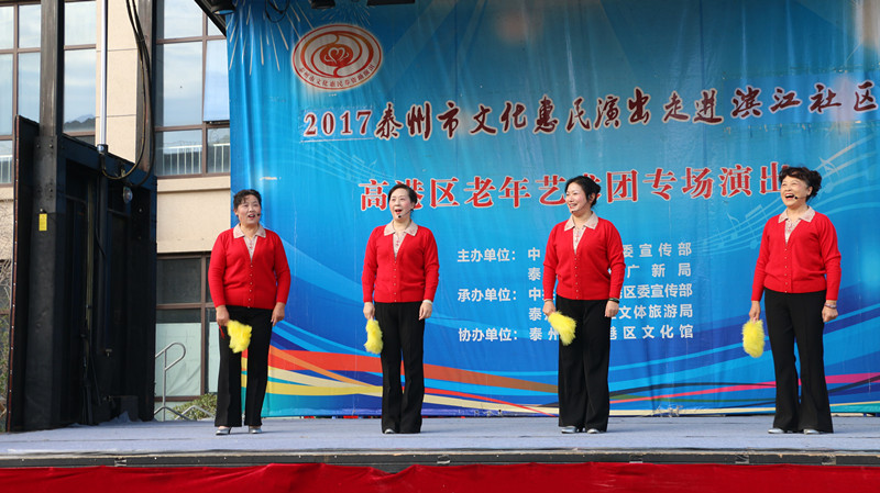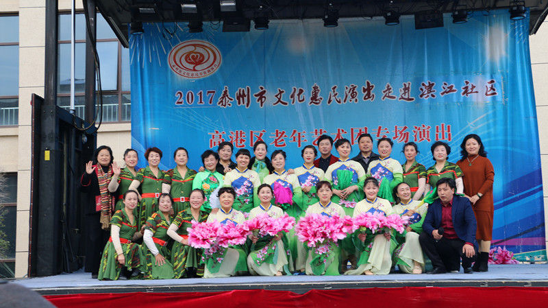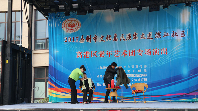 泰州市高港区老年艺术团于2017年11月11日文化惠民演出走进沿江街道滨江社区,为社区居民们带来了欢快的舞蹈、美丽的歌声、说唱表演和小品。演出期间现场气氛热烈,观众们掌声不断,笑声不断,演出结束后观众们仍然不肯离开,充分肯定了我们高港老年艺术团节目的精彩程度。