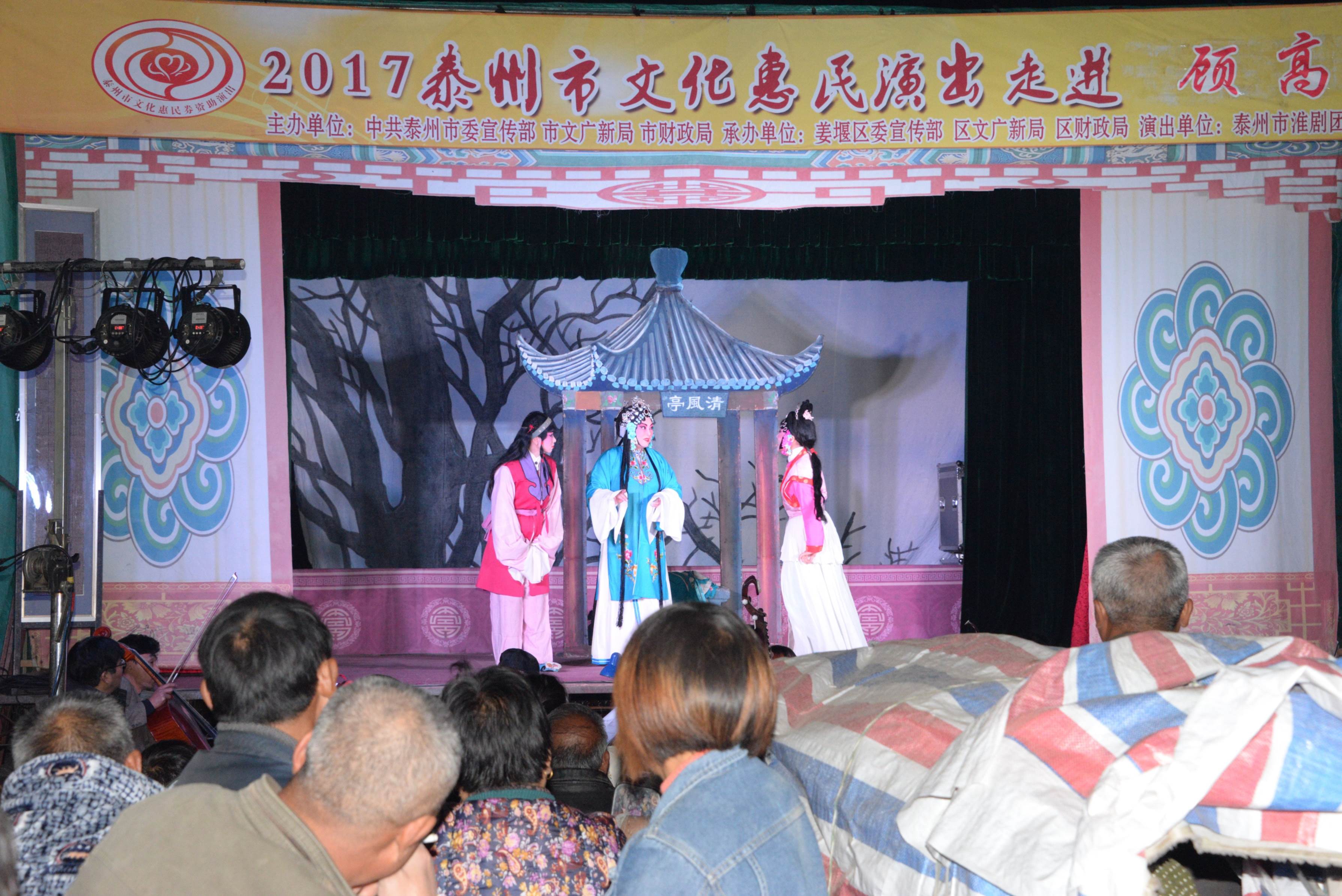 2017年11月13日泰州市淮剧团应姜堰区顾高镇邀请文化惠民演出活动走进了顾高镇俞庄村,为广大的社区居民带来了一台久演不衰优秀经典传统淮剧《腊月雷》,充满着正能量的剧情使全场数千观众时而潸然落泪、时而报以阵阵的掌声,特别是在张继保不认养父母那场戏中,有些观众被剧情深深的感动,在现场高呼严惩忤逆不孝的张继保⋯⋯散席后观众久久不愿离去,俞庄村的负责人对我们讲:“来我们村演出的团队也不少,但是,像你们来演出欣赏的观众这么多还是第一次,证明我们俞庄人民很喜爱看你们的演出,俞庄人民很欢迎你们的到来,希望你们今后常来我们村。”