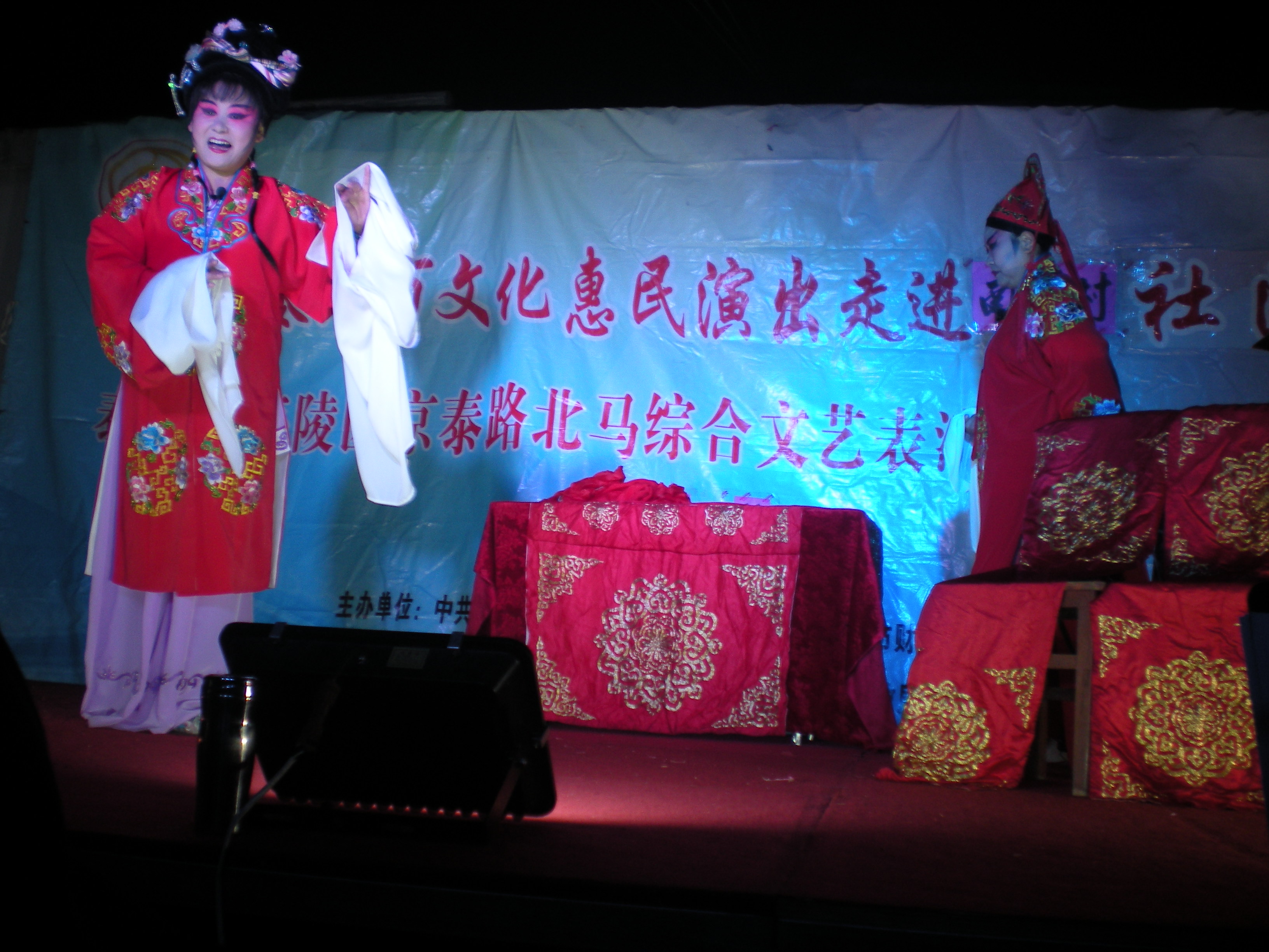 这场演出的曲目是扬剧《借妻》,精彩演出和演员们的深厚功底以及精湛的演技赢得了居民们阵阵喝彩,村民们纷纷感慨不已。演出结束后,村民们纷纷表示这样的活动很好,一致认为这样的活动既丰富了文化生活,又宣扬了传统美德,并希望象这样文化惠民活动以后要多多地开展。