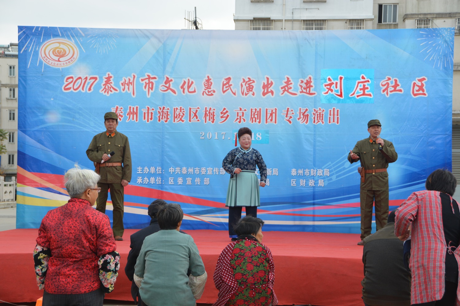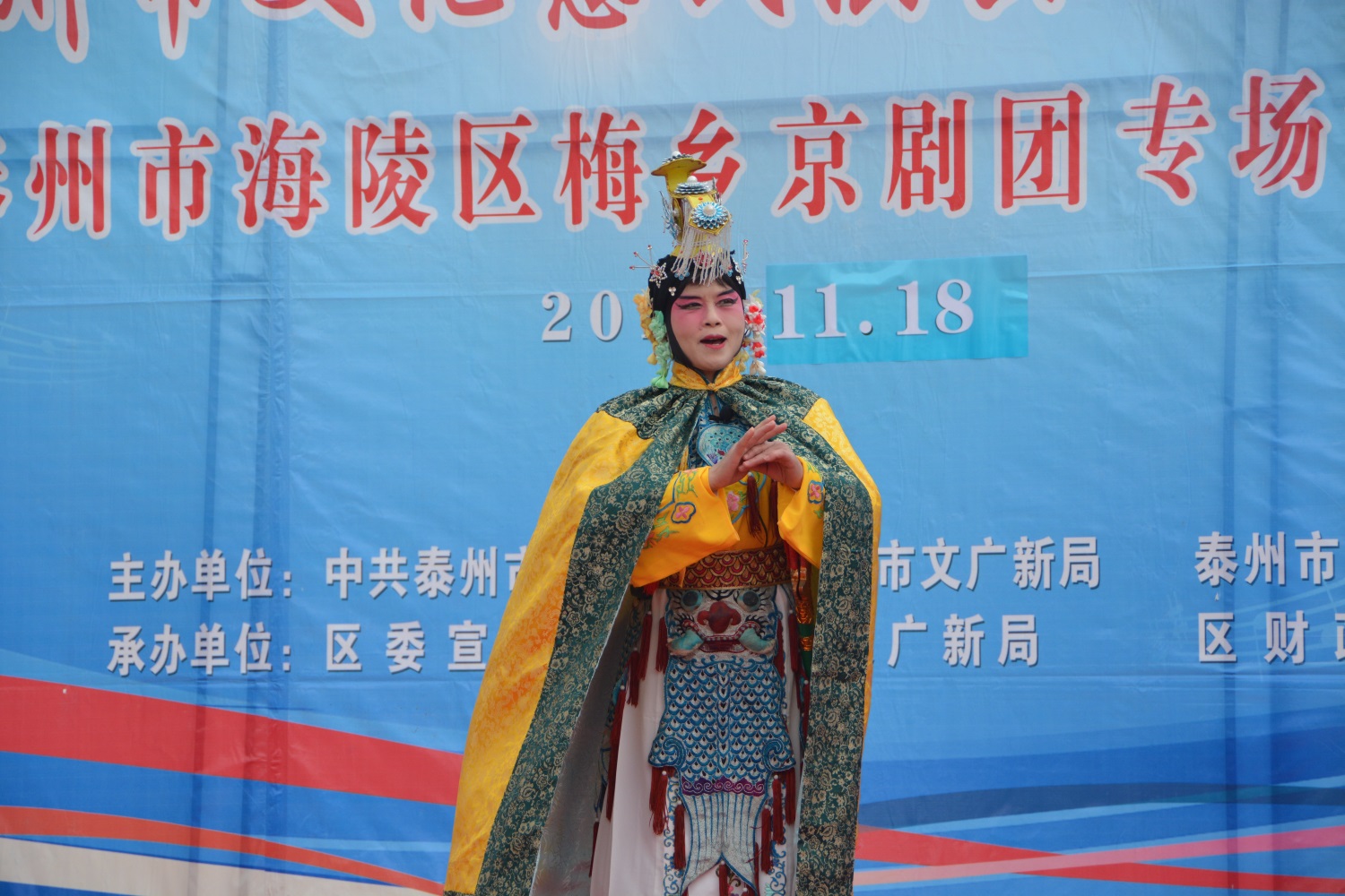 11.18日下午,突然降温,泰州海陵梅乡京剧团一行冒着寒冷来到凤凰街道刘庄社区,把一台国粹经典京剧送到社区。天气虽冷,但却挡不住观众的热情。阵阵掌声不断传来,演员们也倍受鼓舞,一段段经典的唱段把现场气氛推向高潮。
