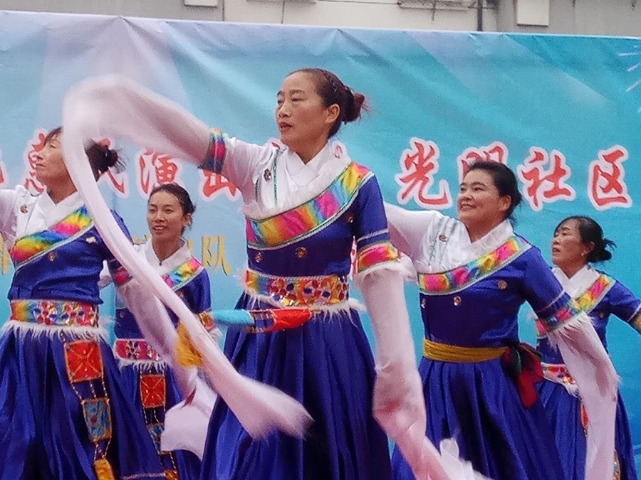 2017年张甸镇舞韵文艺演出队走进姜堰罗塘街道的光明社区演出,虽然天气不太好,但是大家队演出的情绪很高,现场早早的来了很多的观众。