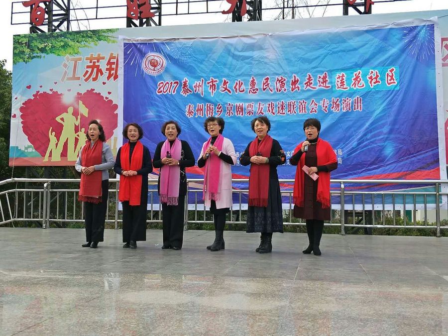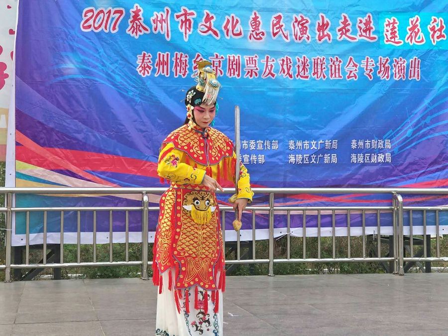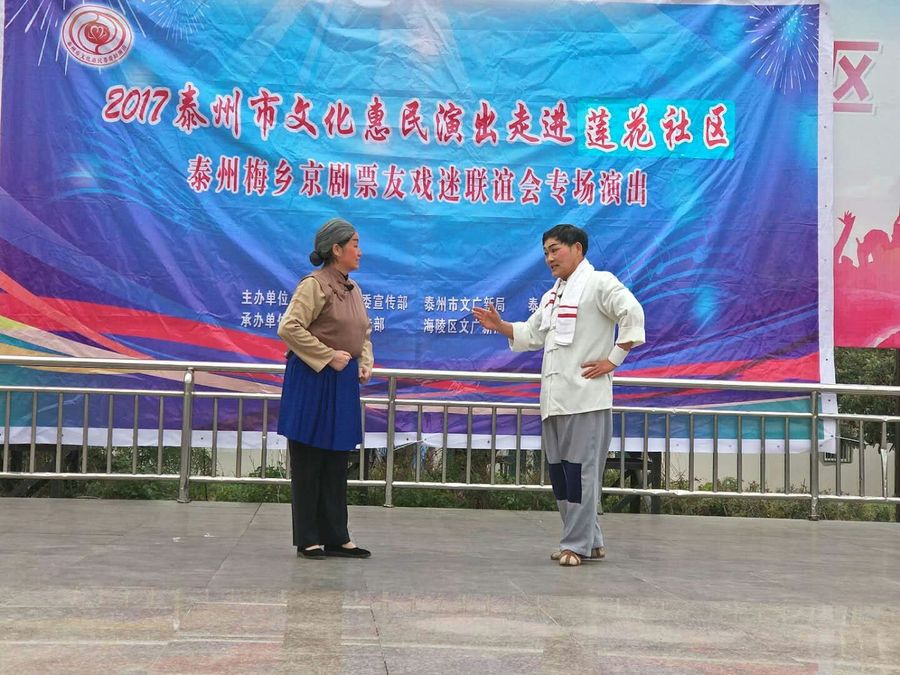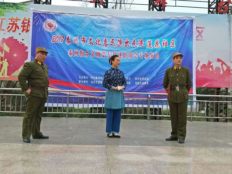 2017年11月19日下午,梅乡京剧票友联谊会在城南街道莲花社区中心广场开展惠民演出活动,为居民们送上了一台京剧演唱,让戏迷们过足了戏瘾。此次演出,有京剧《霸王别姬》、《诗文会》、《白蛇传》、《春闺梦》、《遇皇后》、《锁麟囊》、《三娘教子》等经典传统曲目,有《沙家浜》、《龙江颂》、《智取威虎山》、《海港》等现代京剧的折子戏和优美唱段,演员们通过彩唱、对唱、折子戏等表演形式轮番上场,居民们在台下不时报以热烈的掌声和喝彩声。