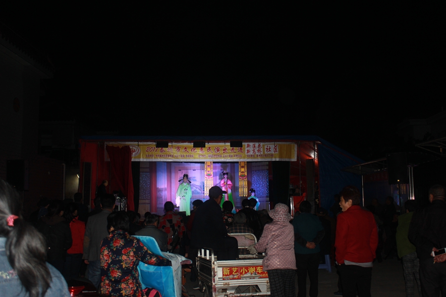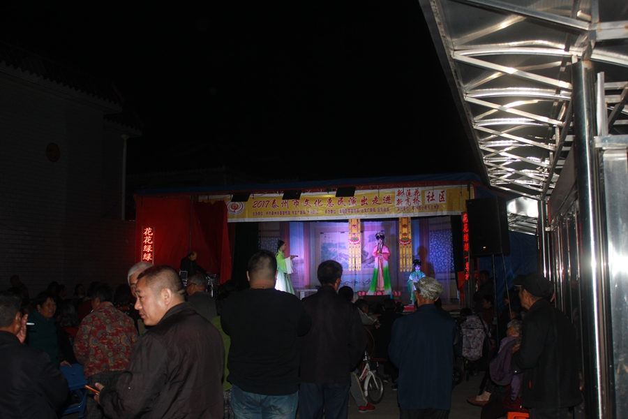 ,为基层社区居民带来了一场经典传统扬剧全本戏《宝莲灯》。为了保证社区群众的欣赏效果,艺术团动用了戏曲演出专用舞台,下午5点,社区主要领导和小雨天艺术团就来到演出现场,为晚上的演出做好了充分准备。节目晚上正点准时开演,现场200多的社区观众看的是兴致勃勃,高潮之时的广场更是掌声雷动,很多观众都说,看到这样的正规化演出,才是感觉到了真正的文化惠民。因现场社区观众的盛情,正本演出后还添续了折子戏段加唱,整场演出持续了近3小时之多...