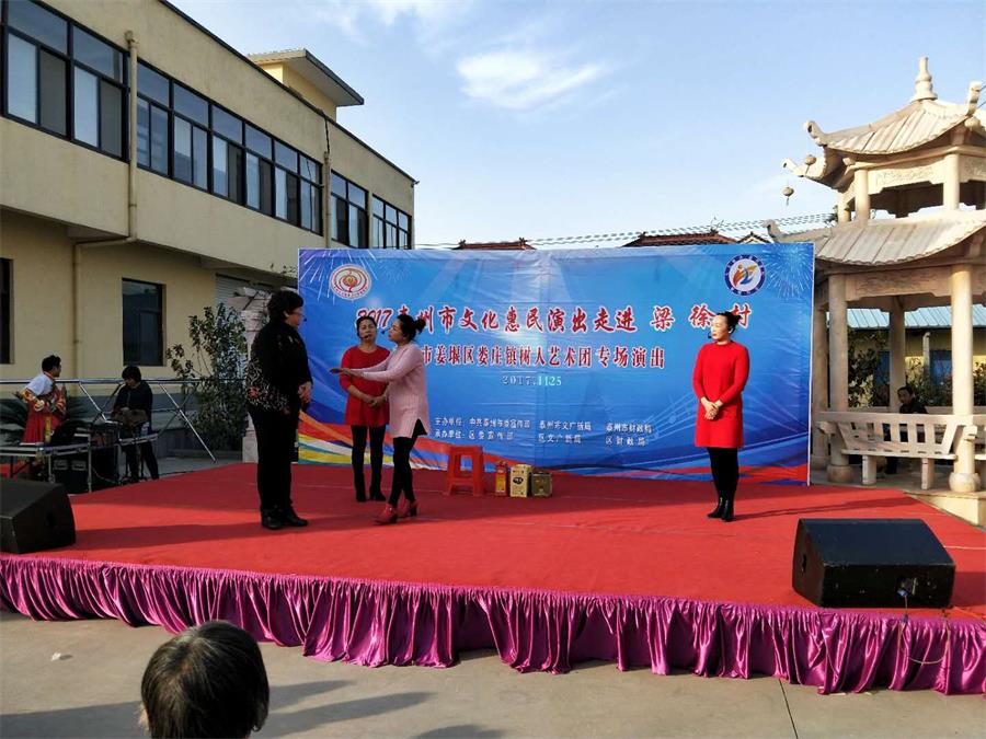11月25日下午14点,娄庄镇树人艺术团惠民演出来到梁徐镇梁徐村,演出的内容丰富,有戏剧、小品、表演唱、舞蹈等节目,节目时长110分钟,观众300多人,整场掌声热烈,赢得观众的好评。